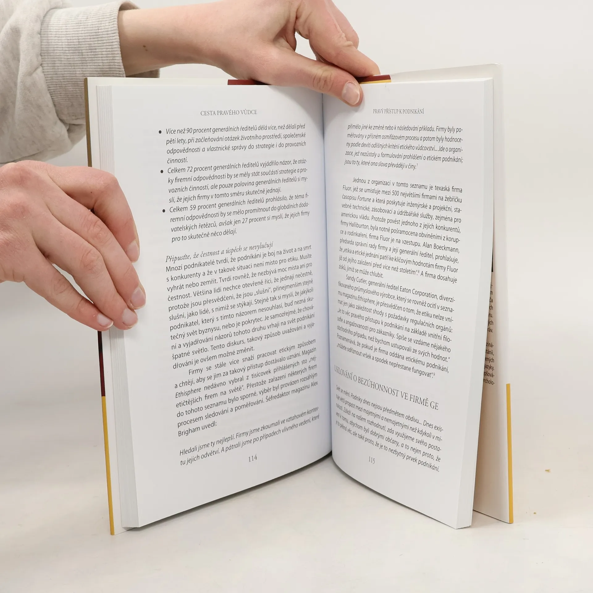 Jedinečná kniha duchovní autority tibetského buddhismu, hlavního představitele tibetské exilové vlády a nizozemského konzultanta v oboru mezinárodního managementu představuje setkání dvou na první pohled nesouvisejících světů – buddhismu a globálních trhů. Při bližším pohledu je však zřejmé, že nejlepší podnikatelské postupy i buddhistické zásady směřují k témuž: k racionálnímu přijímání správných rozhodnutí a k efektivnímu provádění správných praktických kroků. To je i základem pravé cesty vůdčí osobnosti, která chápe vzájemnou provázanost podnikových organizací, jednotlivých zemí a ekonomického systému a nevyhnutelnost změn a v souladu s tím i odpovědně jedná.