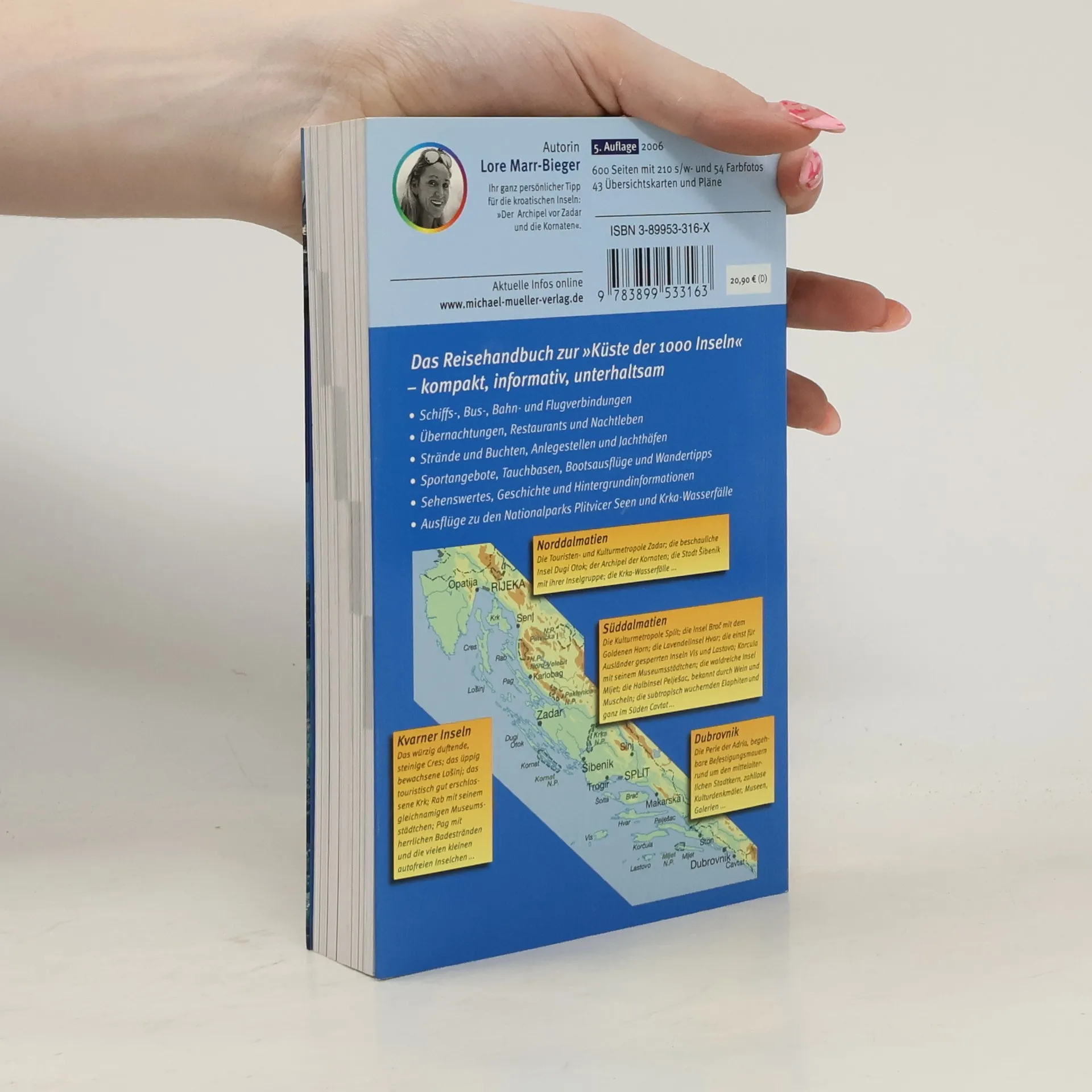 Kroatien ist ein Land der Inseln. Mehr als tausend sind es, die der über 1.700 km langen Festlandküste der Adria vorgelagert sind. Viele davon sind klein und unbewohnt. Andere wie z. B. Cres, Krk und Pag sind seit Urzeiten besiedelt und haben sich im europäischen Tourismus längst einen Namen gemacht. Außer mit schönen Stränden locken sie mit reizvollen Fischerdörfern und Zeugnissen einer langen und reichen Kulturgeschichte. Und am Festland warten große Hafenstädte auf eine Neuentdeckung. Rijeka, Zadar oder Dubrovnik sind mit ihren mittelalterlichen oder venezianisch geprägten Zentren ein echtes Erlebnis. Auf 684 Seiten verrät Lore Marr-Bieger ihre schönsten und spannendsten Detailinformationen.