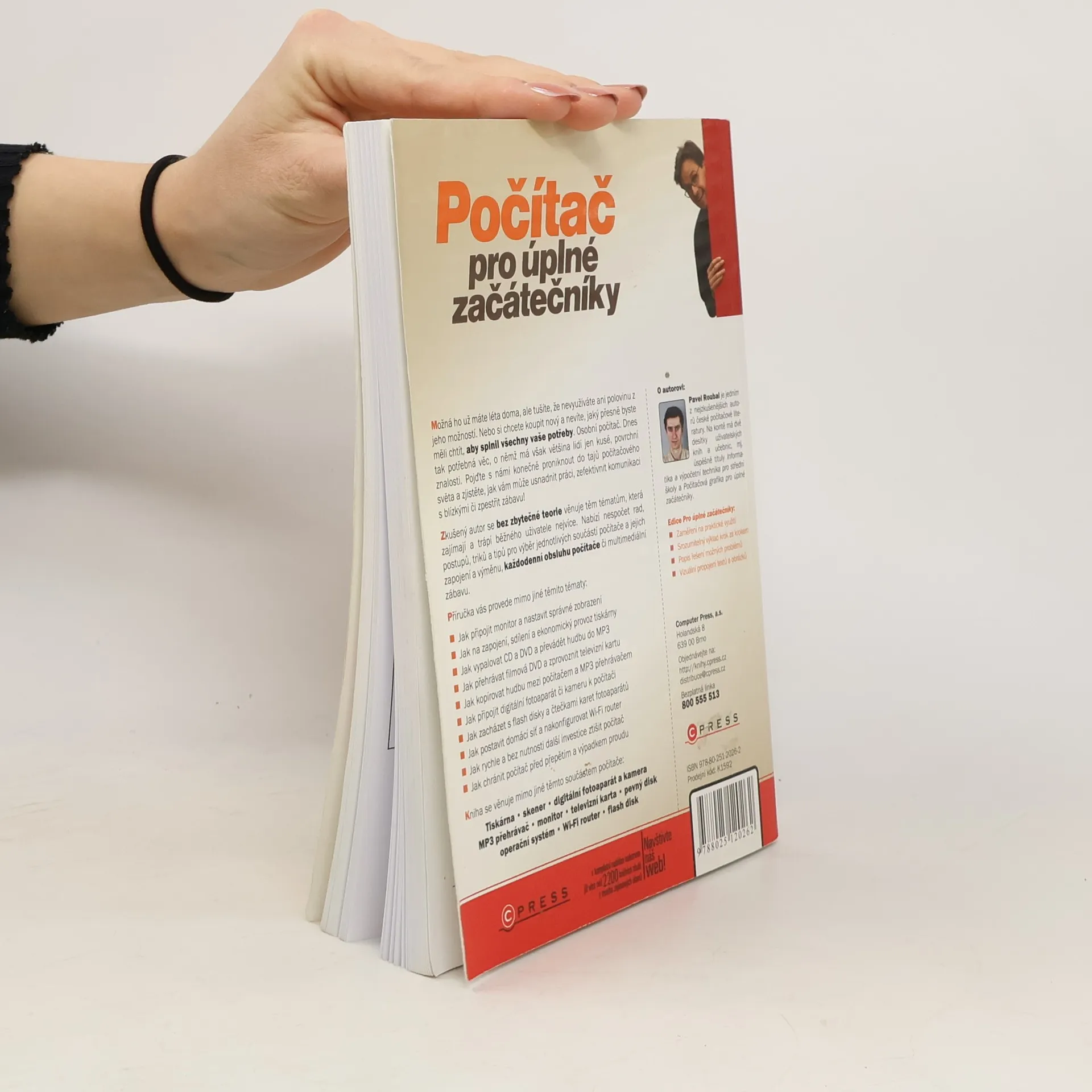 Všechny základní dovednosti a znalosti v jediné knize: naučte se, jak si pořídit a zprovoznit vlastní počítač, připojit k němu foťák, digitální kameru, skener, tiskárnu a další komponenty. Zjistíte, jak tyto zařízení využívat, vybírat v obchodech a co dělat při poruchách. I když už počítač máte, možná nevyužíváte jeho možnosti naplno. Pokud plánujete koupi nového, pomůže vám zjistit, co přesně potřebujete. Osobní počítač je dnes nezbytný, přesto má většina lidí pouze povrchní znalosti. Tato příručka se zaměřuje na praktické využití a nabízí rady, postupy a tipy pro výběr a zapojení komponentů, každodenní obsluhu a multimediální zábavu. Kniha se věnuje také ochraně počítače a řešení možných problémů. Pavel Roubal, zkušený autor české počítačové literatury, vám poskytne srozumitelný výklad krok za krokem s vizuálním propojením textu a obrázků.