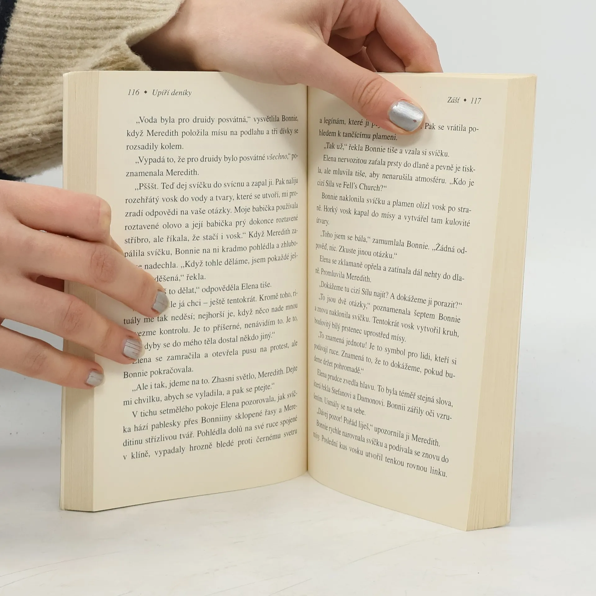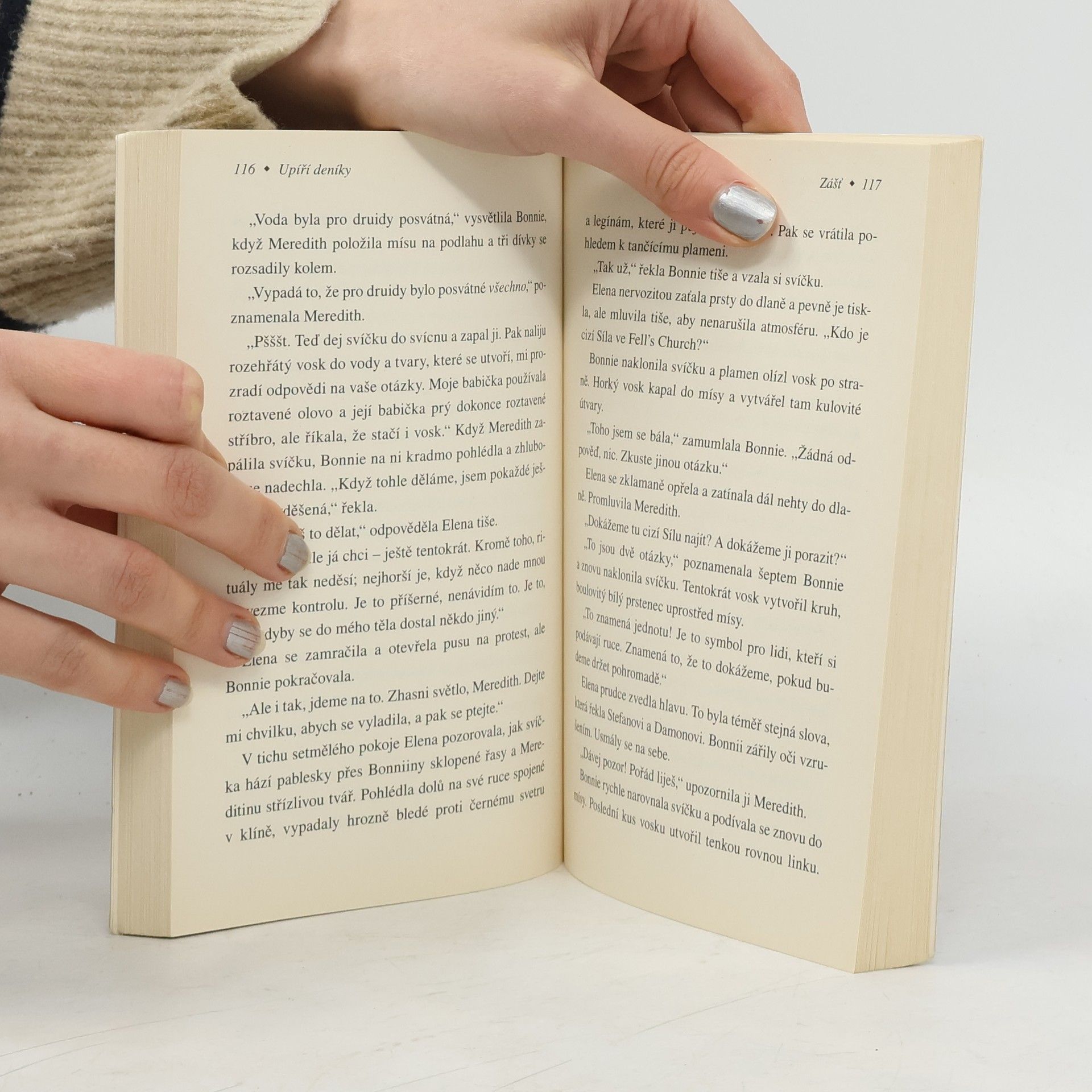 "...Děsivá síla plná zášti napadla naše město. Touží všechny zahubit a pít jejich krev. Dokáží se Damon se Stefanem smířit a bojovat bok po boku proti něčemu ještě hrozivějšímu, než jsou oni sami? A dokážu to já?"