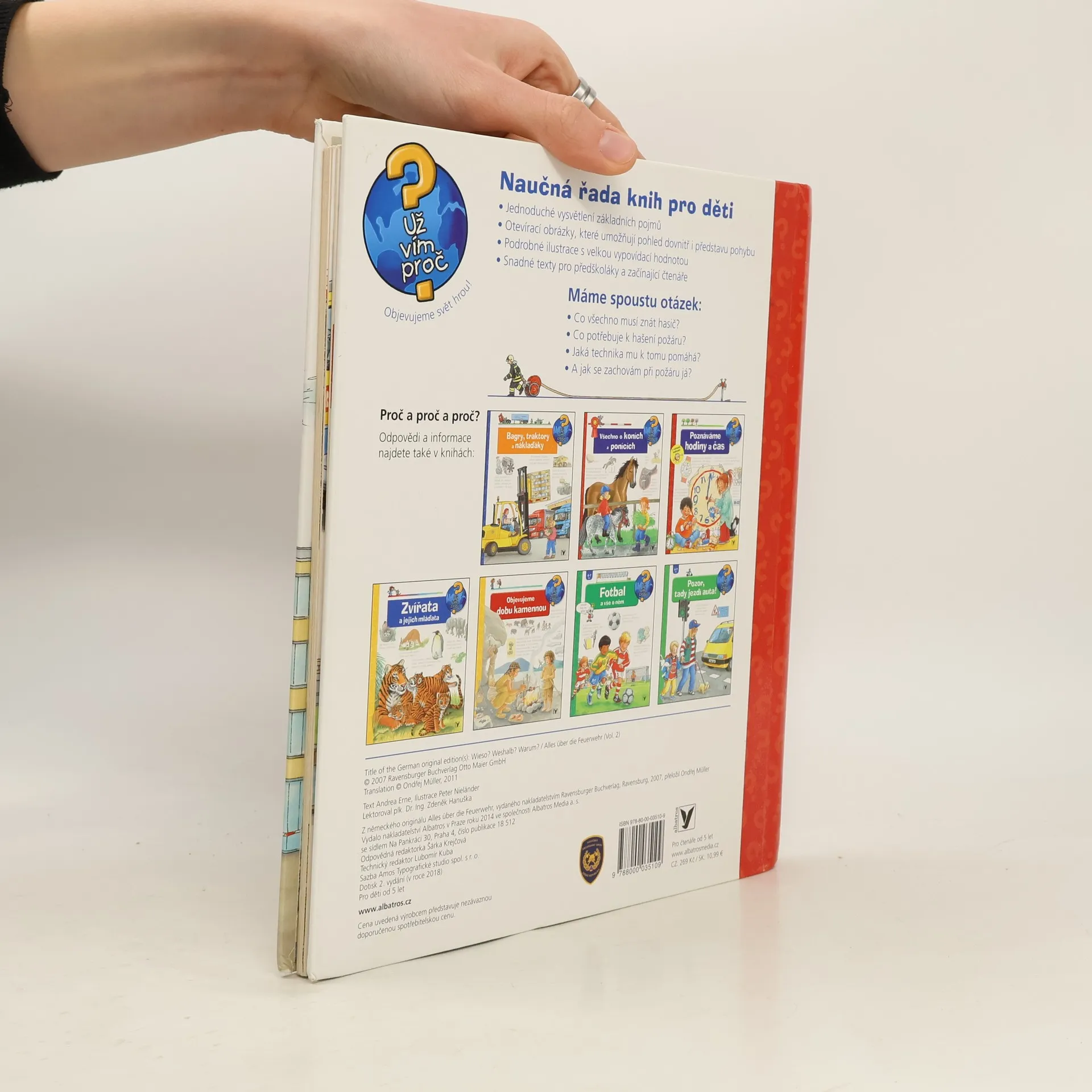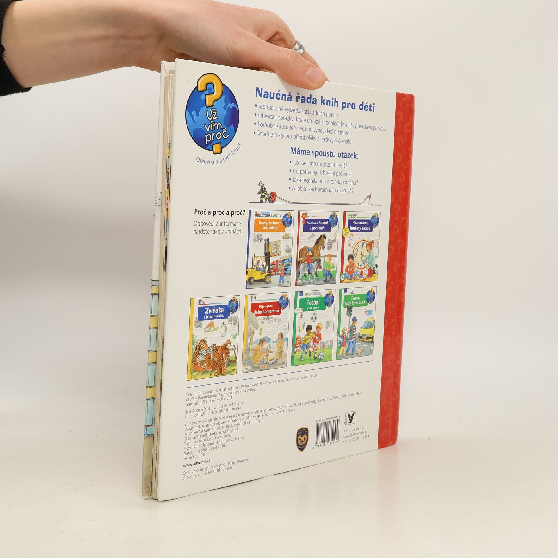 Co všechno musí znát hasič? Co potřebuje k hašení požáru? Co se děje na požární stanici a kde všude ještě hasiči pomáhají? A jak se zachovám při požáru já? Dítě se nejen dozví odpovědi na řadu otázek, ale také získá návod, jak se chovat v nebezpečné situaci.