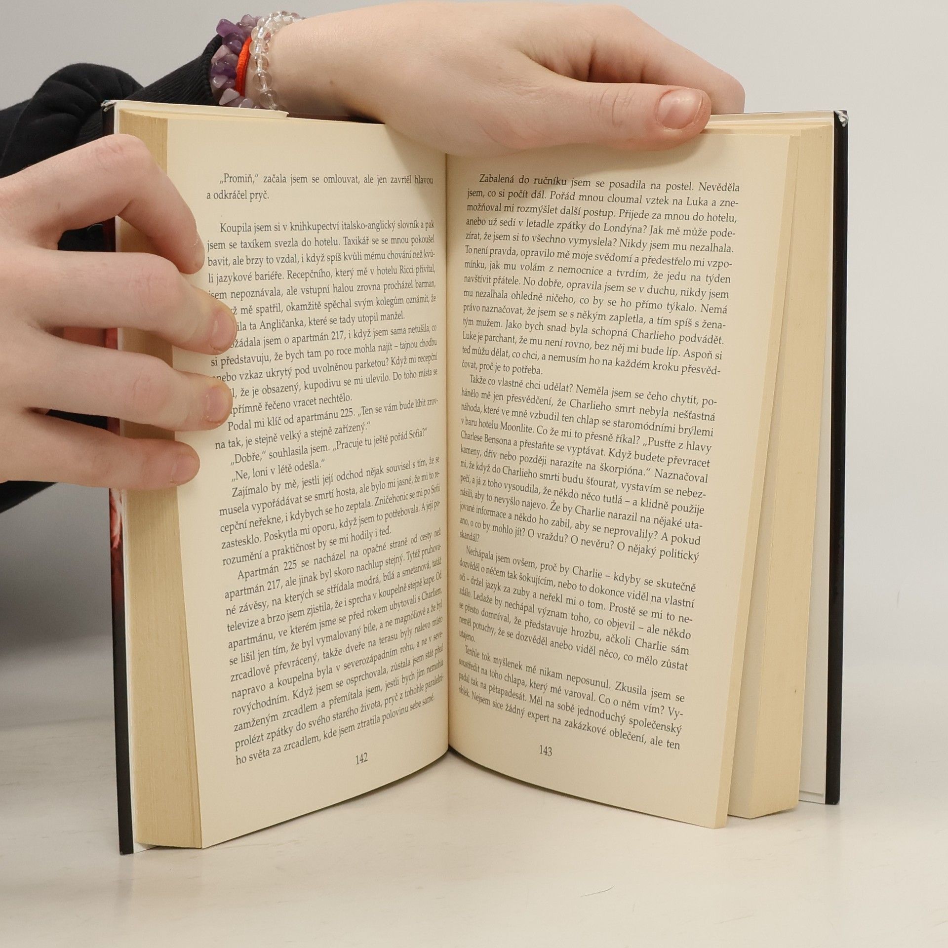 Kate Greyová si u přátel prohlíží fotky z dovolené v Miami, když zažije šok. Na jedné z fotografií je její manžel Charlie. Tmavé vlasy, modré oči, jeho typický úsměv… Ne, Kate ani na chvíli nepochybuje, že je to on. Věc má ovšem háček: Charlie to být nemůže, protože se před rokem za záhadných okolností utopil na Sicílii. Viděla přece jeho mrtvé tělo! Kate je odhodlána muže z fotografie najít a zjistit, kdo to vlastně je. Sleduje stopy vedoucí z Miami na Sicílii a každým okamžikem v ní sílí vědomí, že o muži, jehož považovala za svou životní lásku a strávila po jeho boku dva nádherné roky, věděla proklatě málo. Vlastně skoro nic. Byl Charlie zavražděn? Bylo jejich manželství skutečně tak bezproblémové, jak jí utkvělo ve vzpomínkách? A jestliže už Kate nemá komu věřit, může se spolehnout alespoň sama na sebe, anebo ji dostihne vlastní tajemná minulost?