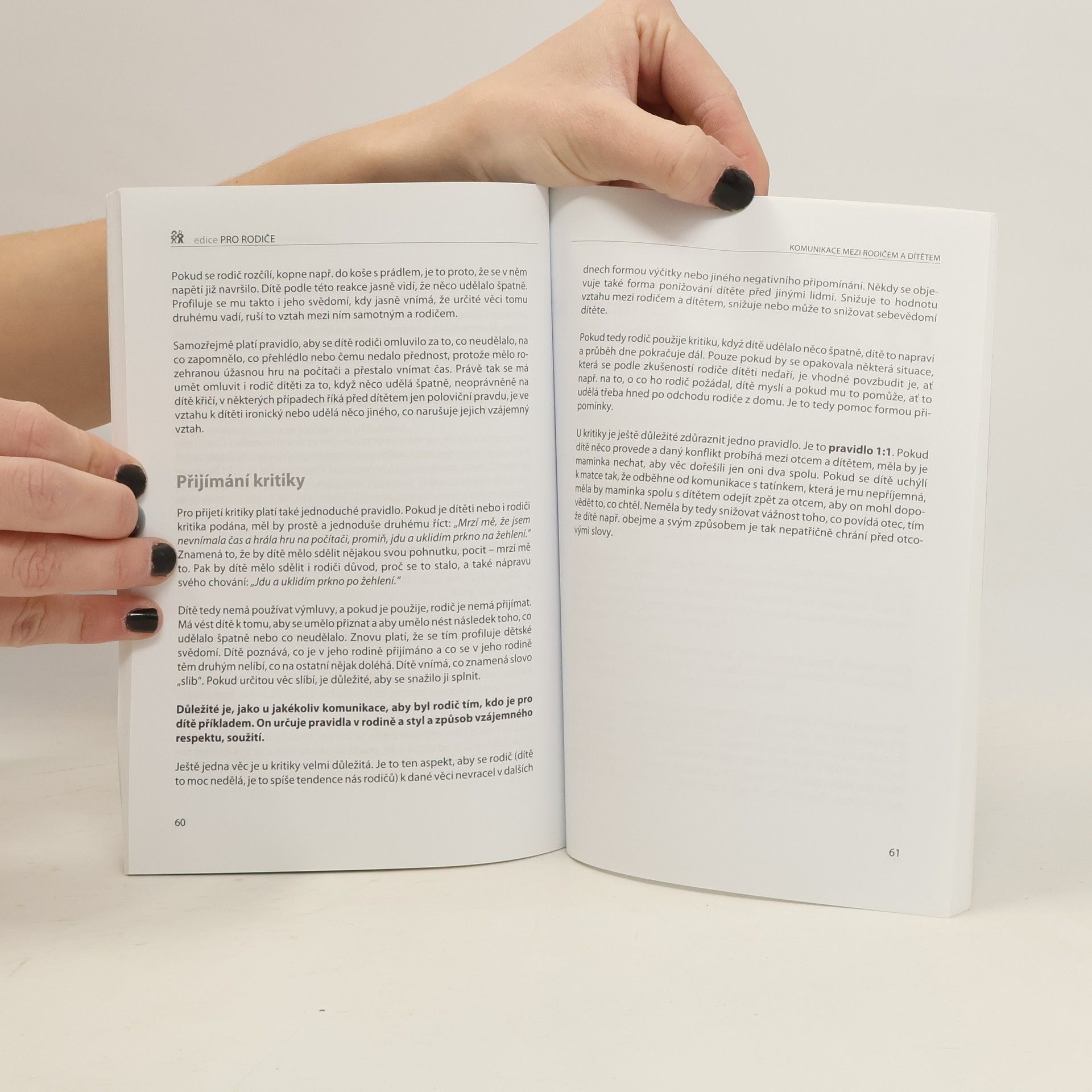 Podtitul: styly a techniky komunikace, komunikace rodiče ve vztahu k dítěti, vývojová období dítěte, komunikace v náročných situacích Pravidla a zákonitosti komunikace mezi rodičem a dítětem od narození do období dospívání. Příručka pro rodiče seznamuje, jak má vypadat vzájemná komunikace, která je důležitá pro lepší poznání dítěte, přináší potěšení ze společně stráveného času a pomáhá vybudovat pevný a přirozený vztah. Popisuje jednotlivé styly a techniky komunikace, pravidla komunikace v jednotlivých vývojových obdobích dítěte a v různých náročných situacích