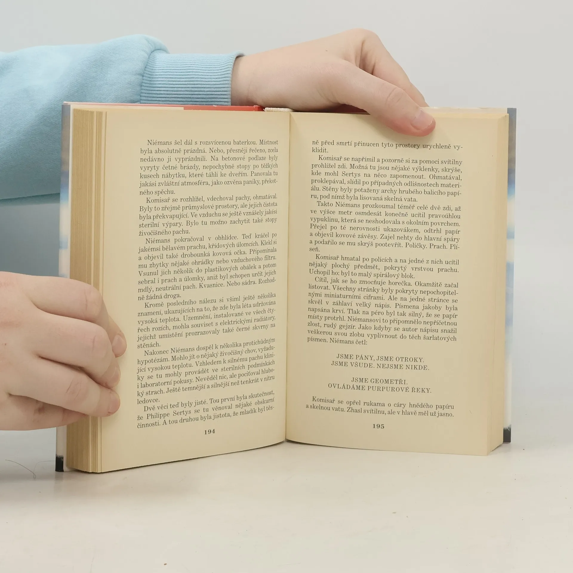 V prostředí skal a ledovců jsou postupně nalezena v pozici embrya tři zmučená těla. Rituální vraždy, nebo dílo šílence? Na druhém konci Francie dojde k nevysvětlitelné krádeži dvacet let staré školní kartotéky, podivnému vniknutí do místní hrobky. Vyšetřování vedou nezávisle na sobě dva policisté, maximálně rozdílní, ovšem jen zjevem. Jednotlivé střípky mozaiky do sebe postupně zapadají, napětí nejen neochabuje, ale stále narůstá. Skutečně vynikající thriller, přeložený už do 12 jazyků. V zájmu autentičnosti se ovšem autor občas nemůže vyhnout hrubému vyjadřování některých osob, krvavým scénám apod.