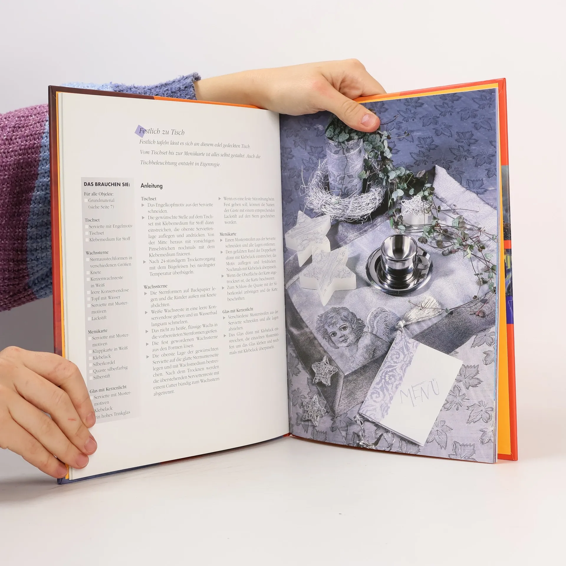 Bilder und Anleitungen zur Dekoration und Verzierung von Baumschmuck, Dosen, Schachteln, Mappen, Karten, Briefpapier, Tischsets.