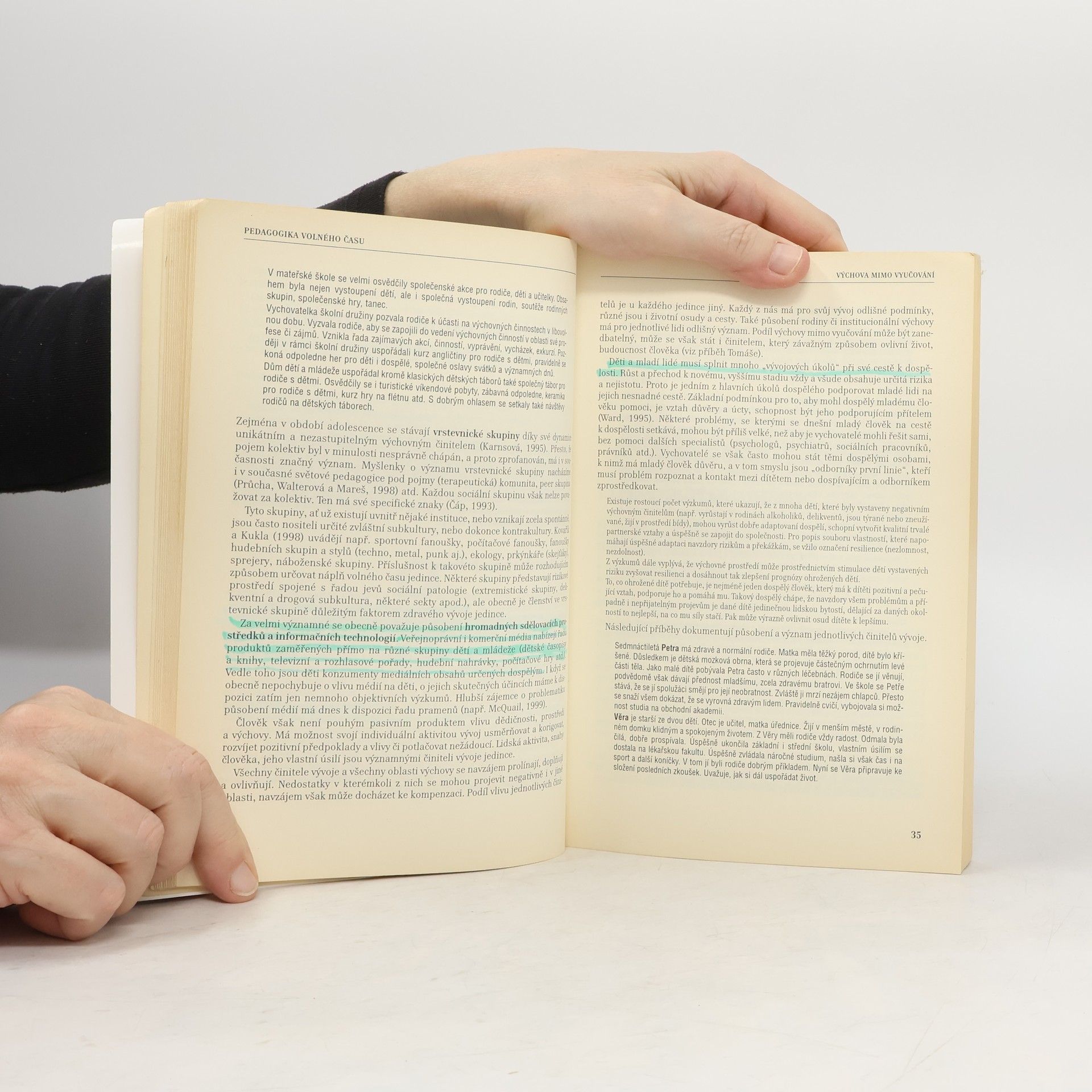 Teorie, praxe a perspektivy výchovy mimo vyučování Význam pedagogické práce s dětmi, dospívajícími i dospělými ve volném čase stále roste. Proto rostou i kvalifikační požadavky kladené na všechny, kdo v oblasti pedagogiky volného času vychovatelství působí. Především jim je určeno nové, aktualizované vydání pspěšné příručky. Stručně vymezuje pojmy volný čas a výchova mimo vyučování a ukazuje jejich historický vývoj. Uvádí základní funkce výchovy mimo vyučování, zvláštnosti pedagogické komunikace, duševní hygieny a učení ve specifických podmínkách volného času. Podává přehled a charakteristiku vzdělávácích a výchovných činností i hlavních typů zařízení pro volný čas v zahraničí. Výklad doplňuje přehled aktuálních právních norem vztahujících se na mimoškolní výchovu.