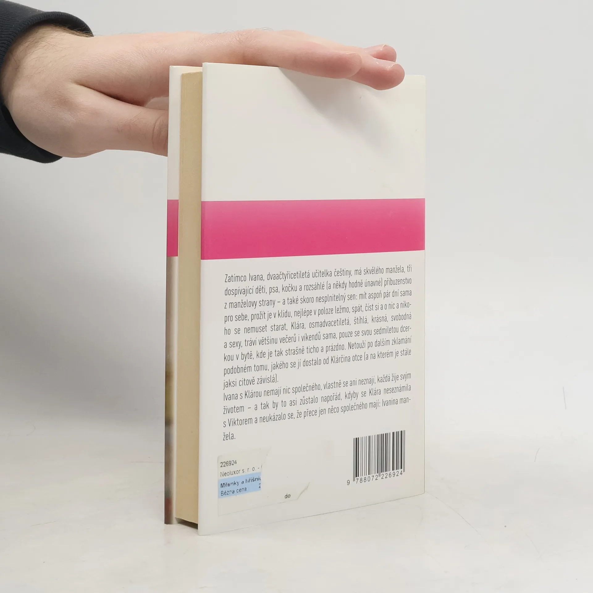 Zatímco Ivana, dvaačtyřicetiletá učitelka češtiny, má skvělého manžela, tři dospívající děti, psa, kočku a rozsáhlé (a někdy hodně únavné) příbuzenstvo z manželovy strany - a také skoro nesplnitelný sen: mít aspoň pár dní sama pro sebe, prožít je v klidu, nejlépe v poloze ležmo, spát, číst si a o nic a nikoho se nemuset starat, Klára, osmadvacetiletá, štíhlá, krásná, svobodná a sexy, tráví většinu večerů i víkendů sama, pouze se svou sedmiletou dcerkou v bytě, kde je tak strašně ticho a prázdno. Netouží po dalším zklamání podobném tomu, jakého se jí dostalo od Klárčina otce (a na kterém je stále jaksi citově závislá). Ivana s Klárou nemají nic splečného, vlastně se ani neznají, každá žije svým životem - a tak by to asi zůstalo napořád, kdyby se Klára neseznámila s Viktorem a neukázalo se, že přece jen něco společného mají - Ivanina manžela.