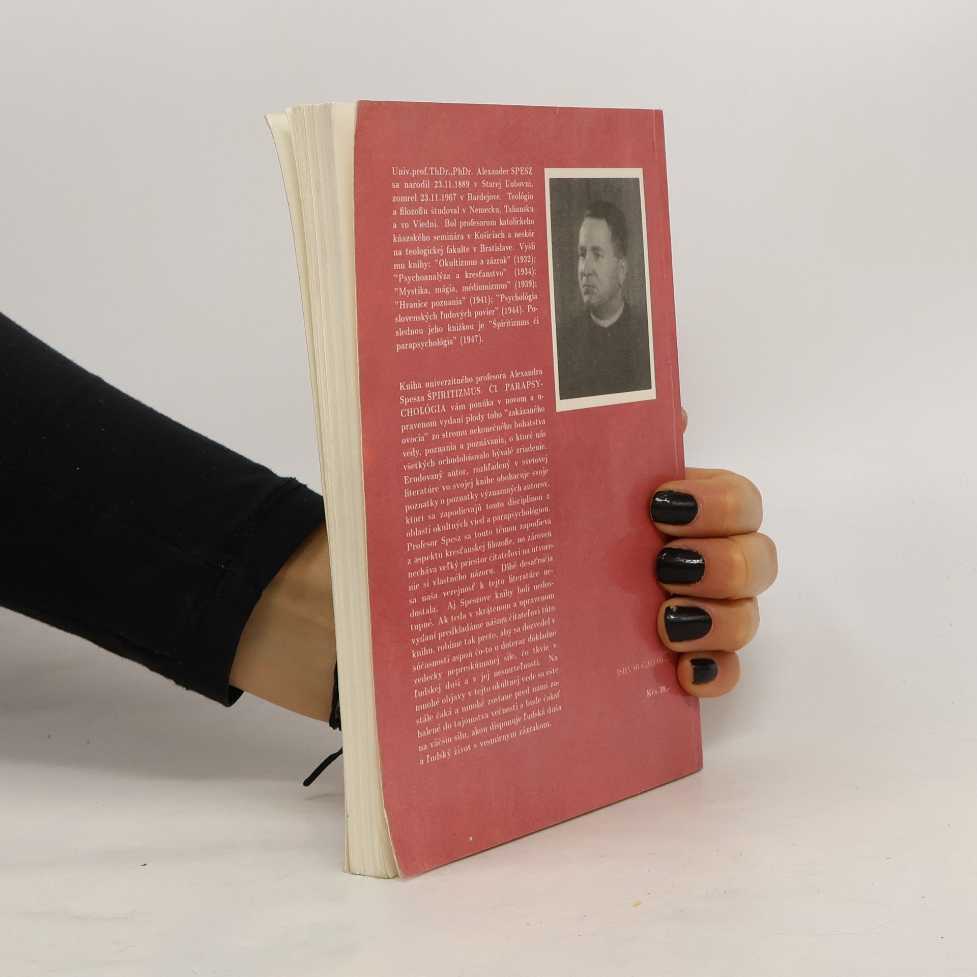 Kniha univerzitného profesora Alexandra Spesza vám ponúka v novom a upravenom vydaní plody toho „zakázaného ovocia“ zo stromu nekonečného bohatstva vedy, poznania a poznávania, o ktoré nás všetkých ochudobňovalo bývalé zriadenie. Erudovaný autor, rozhľadený v svetovej literatúre vo svojej knihe obohacuje svoje poznatky o poznatky významných autorov, ktorí sa zapodievajú touto disciplínou z oblasti okultných vied a parapsychológiou. Profesor Spesz sa touto témou zapodieva z aspektu kresťanskej filozofie, no zároveň necháva veľký priestor čitateľovi na utvorenie si vlastného názoru. Druhé, skrátené a upravené vydanie upravila Zuzana Hodošová