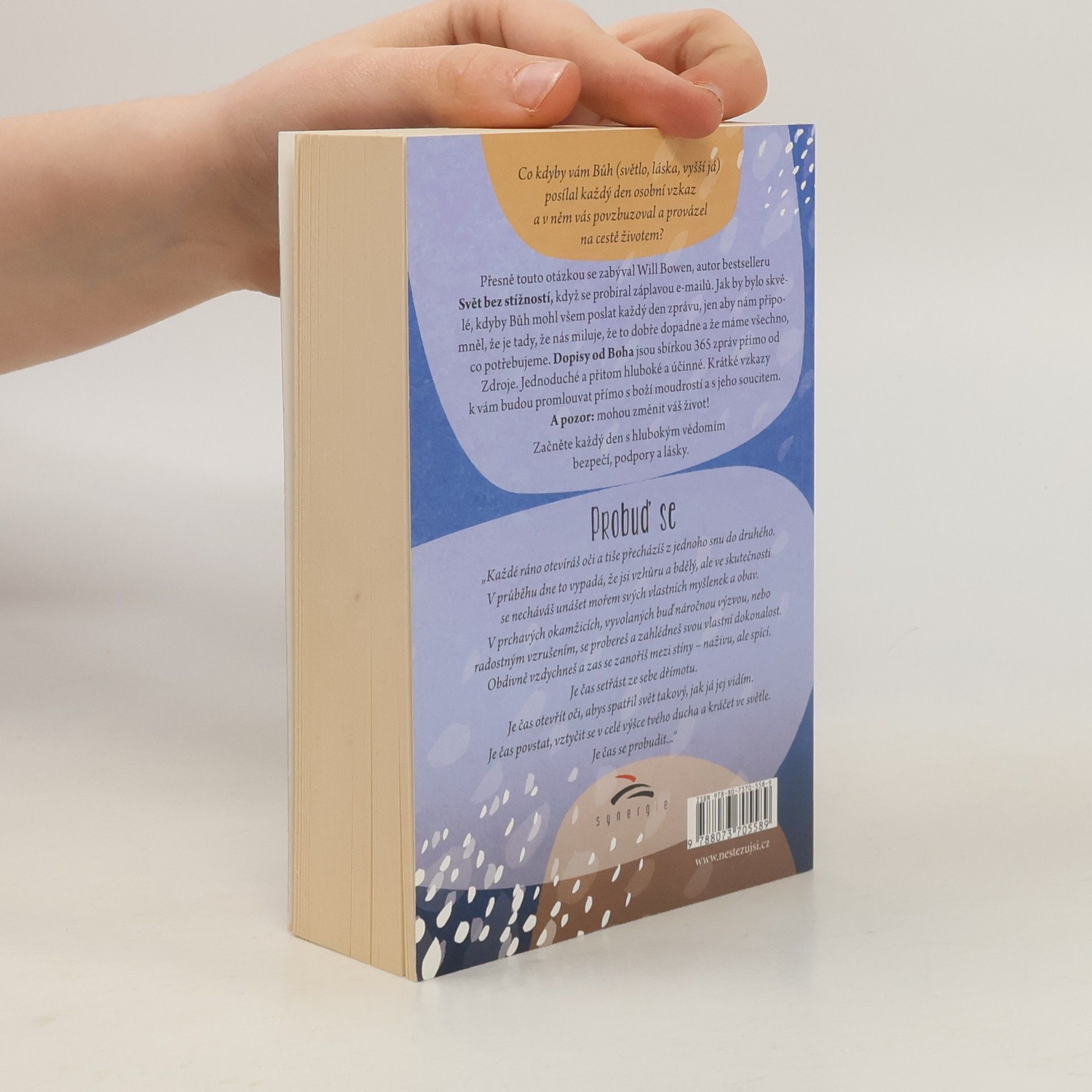 Rok s každodenním vedením a inspirací přímo od ZDROJE Co kdyby vám Bůh (světlo, láska, vyšší já) posílal každý den osobní vzkaz a v něm vás povzbuzoval a provázel na cestě životem? Přesně touto otázkou se zabýval Will Bowen, autor bestselleru Svět bez stížností, když se probíralzáplavou e-mailů. Jak by bylo skvělé, kdyby Bůh mohl všem poslat každý den zprávu, jen aby nám připomněl, že je tady, že nás miluje, že to dobře dopadne a že máme všechno, co potřebujeme. Dopisy od Boha jsou sbírkou 365 zpráv přímo od Zdroje. Jednoduché a přitom hluboké a účinné. Krátké vzkazy k vám budou promlouvat přímo s boží moudrostí a s jeho soucitem. A pozor: mohou změnit váš život! Začněte každý den s hlubokým vědomím bezpečí, podpory a lásky.