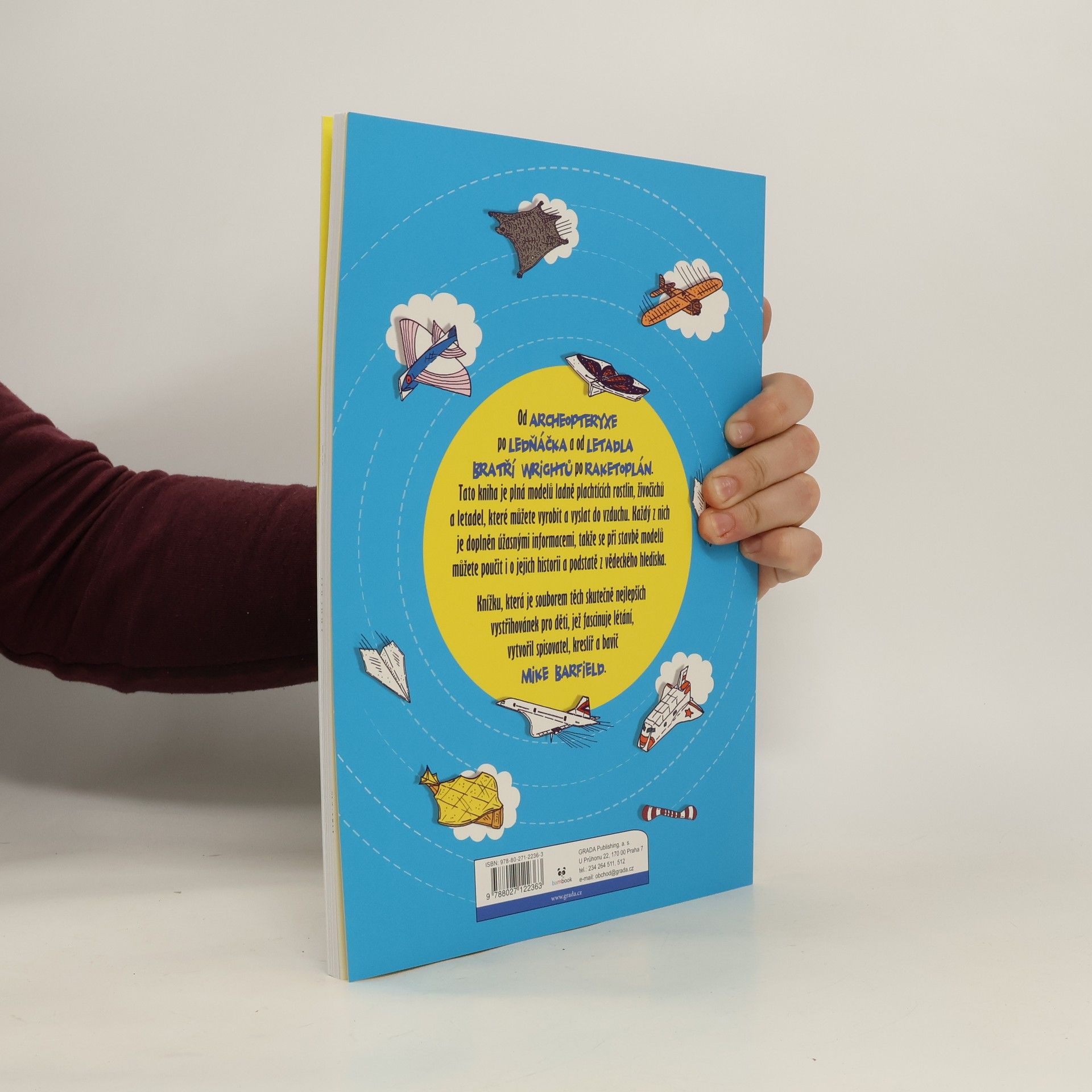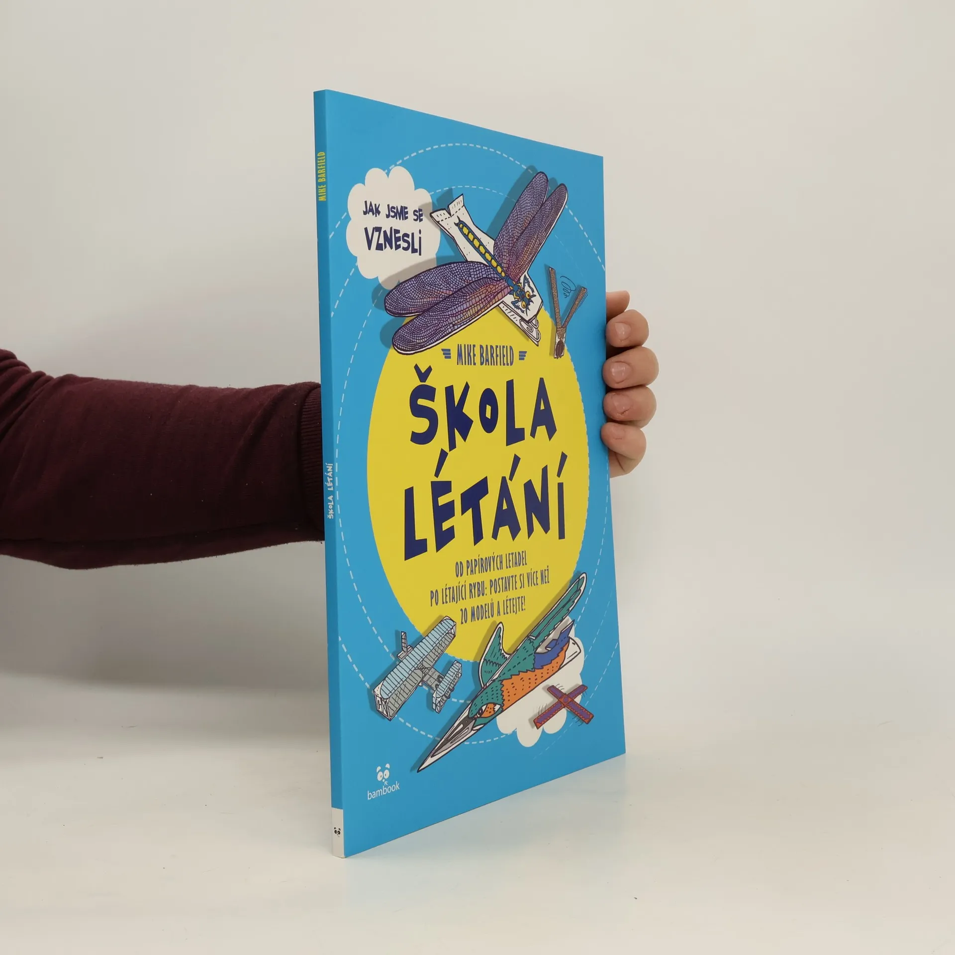 Vítejte ve škole létání. Dozvíte se zde mnoho zajímavého z historie létání. Zveme vás na výpravu, která začíná v dávných časech před dinosaury a vede přes zlatou dobu letectví až do dnešních dnů. Cestou se naučíte tvořit překrásné létající modely včetně různých ptáků, dravců, rostlin, letadel, a dokonce i vesmírné lodi poháněné proudovým motorem. Každý z nich je doplněn úžasnými informacemi, takže se při stavbě modelů můžete poučit o jejich historii a podstatě z vědeckého hlediska. Knížku vytvořil spisovatel, kreslíř a bavič Mike Barfield. Nabízí soubor těch skutečně nejlepších vystřihovánek pro kluky a holky, které fascinuje létání.