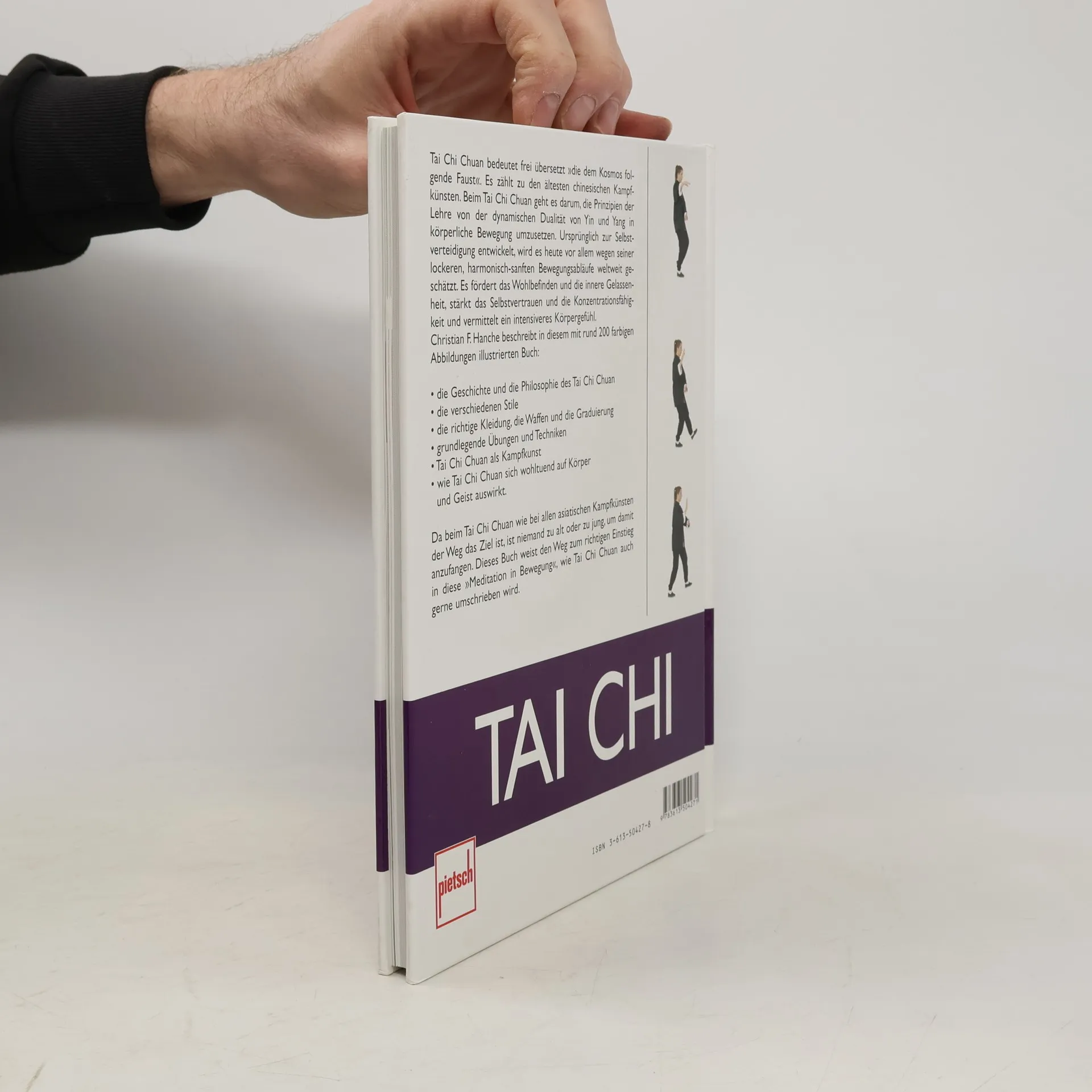 Kampfsport hält Körper und Geist fit, fördert Selbstvertrauen und Konzentration und dient der Selbstverteidigung. In dieser Buchreihe wird der Einstieg in verschiedene Kampfsportarten anschaulich und verständlich erklärt. Jeder Band beleuchtet die Geschichte, Philosophie, Prinzipien und Etikette der jeweiligen Disziplin, erläutert die benötigte Ausrüstung und gibt einen Ausblick auf die ersten Trainingsstunden. Die Autoren sind erfahrene Budoka, die Schritt für Schritt die Trainingsmethoden und grundlegenden Techniken vorstellen und ihre Disziplin sowohl als Wettkampfsport als auch als Selbstverteidigungskunst präsentieren. Tai Chi Chuan, übersetzt „die dem Kosmos folgende Faust“, setzt die Prinzipien von Yin und Yang in Bewegung um. Ursprünglich zur Selbstverteidigung entwickelt, wird es heute wegen seiner harmonischen Bewegungsabläufe geschätzt. Tai Chi fördert Wohlbefinden, innere Gelassenheit, Selbstvertrauen und Konzentrationsfähigkeit und vermittelt ein intensiveres Körpergefühl. Das Inhaltsverzeichnis umfasst eine Einführung, die Ursprünge und Tradition des Tai Chi, den Einstieg in die Praxis, Grundtechniken, die Kampfkunst-Aspekte sowie die wohltuende Wirkung des Tai Chi. Zudem finden sich nützliche Adressen, ein Register und Danksagungen.