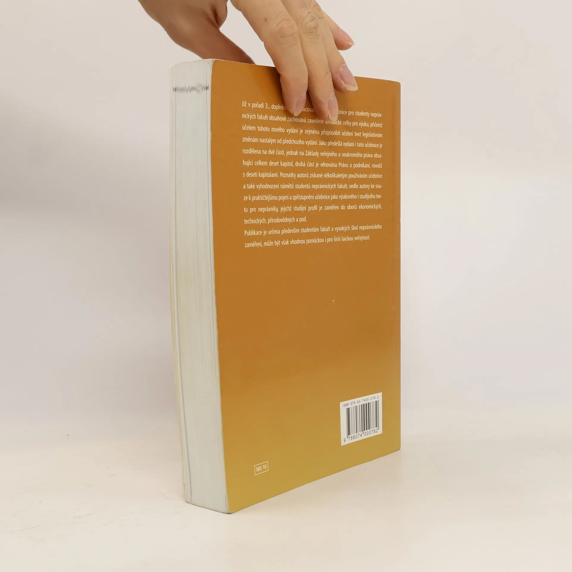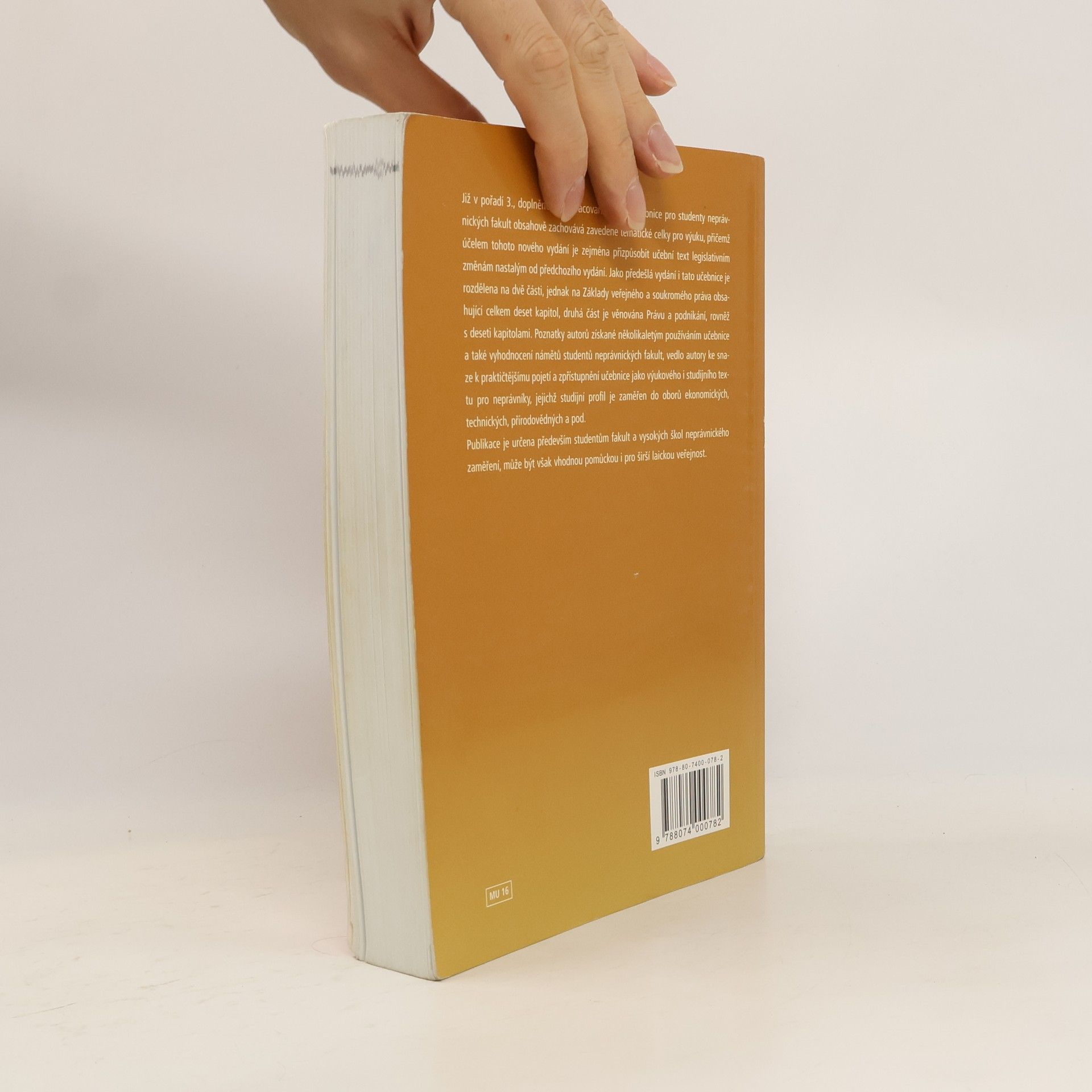 Obsahem učebnice pro posluchače neprávnických fakult je výklad základních institutů, principů a norem vybraných oblastí pozitivního práva. Kniha je rozdělena na dvě části, prvá část je zaměřena na obecný výklad základů veřejného a soukromého práva (ústavní, občanské, pracovní, správní, trestní právo a právo sociálního zabezpečení), zatímco druhá část je věnována úpravě právních vztahů v podnikání (živnostenské právo, ochrana hospodářské soutěže, zadávání veřejných zakázek, ochrana spotřebitele, konkurzní právo, průmyslová práva duševního vlastnictví, právo obchodních společností, smluvní vztahy v podnikání, obchodní spory mezi podnikateli a jejich řešení). Publikace je určena především studentům ekonomických a zemědělských fakult a dalších zainteresovaných škol, avšak výkladu mechanismů působení právních norem v praxi na příkladech a vzorech může být vhodně využito i laickou veřejností k poznání práva v celé jeho šíři společenských vztahů.