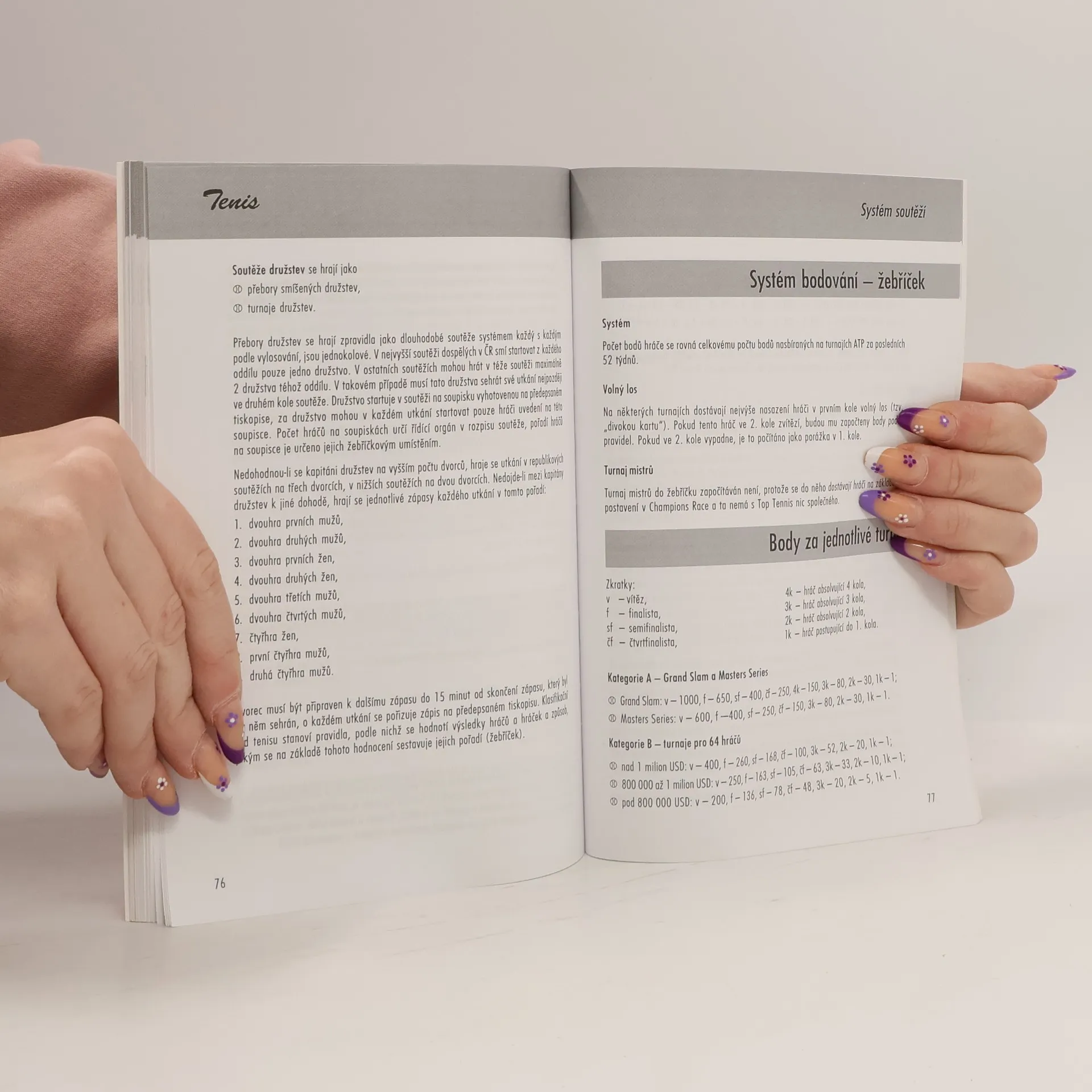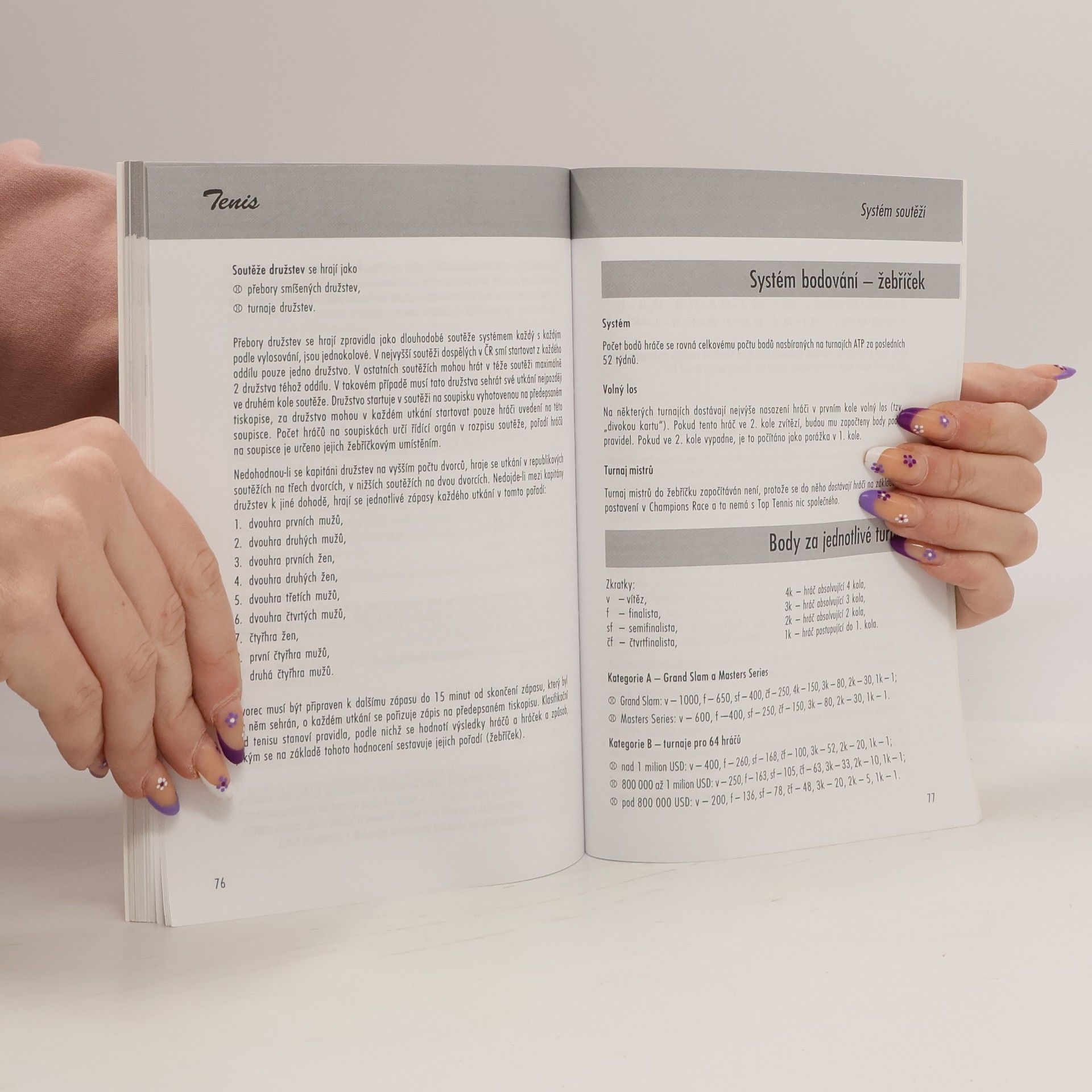Tenis je jedna z nejrozšířenějších míčových sportovních her, která se dá hrát v kterémkoli věku a zejména na jakékoli úrovni. Jediné, co ke hře potřebujete, je alespoň trochu vhodné hřiště, raketa, míček a hlavně - nejlépe úrovní odpovídající - partner. Kniha seznamuje čtenáře s technikou a nácvikem jednotlivých tenisových úderů, popisuje, jak zvolit tu nejvhodnější taktiku při dvouhře i čtyřhře i jak si vybudovat a následně udržovat vlastní kurt. Tenisoví fanoušci v ní naleznou popis nejvýznamnějších světových soutěží jednotlivců i družstev a charakteristiky nejlepších světových i českých tenistů.