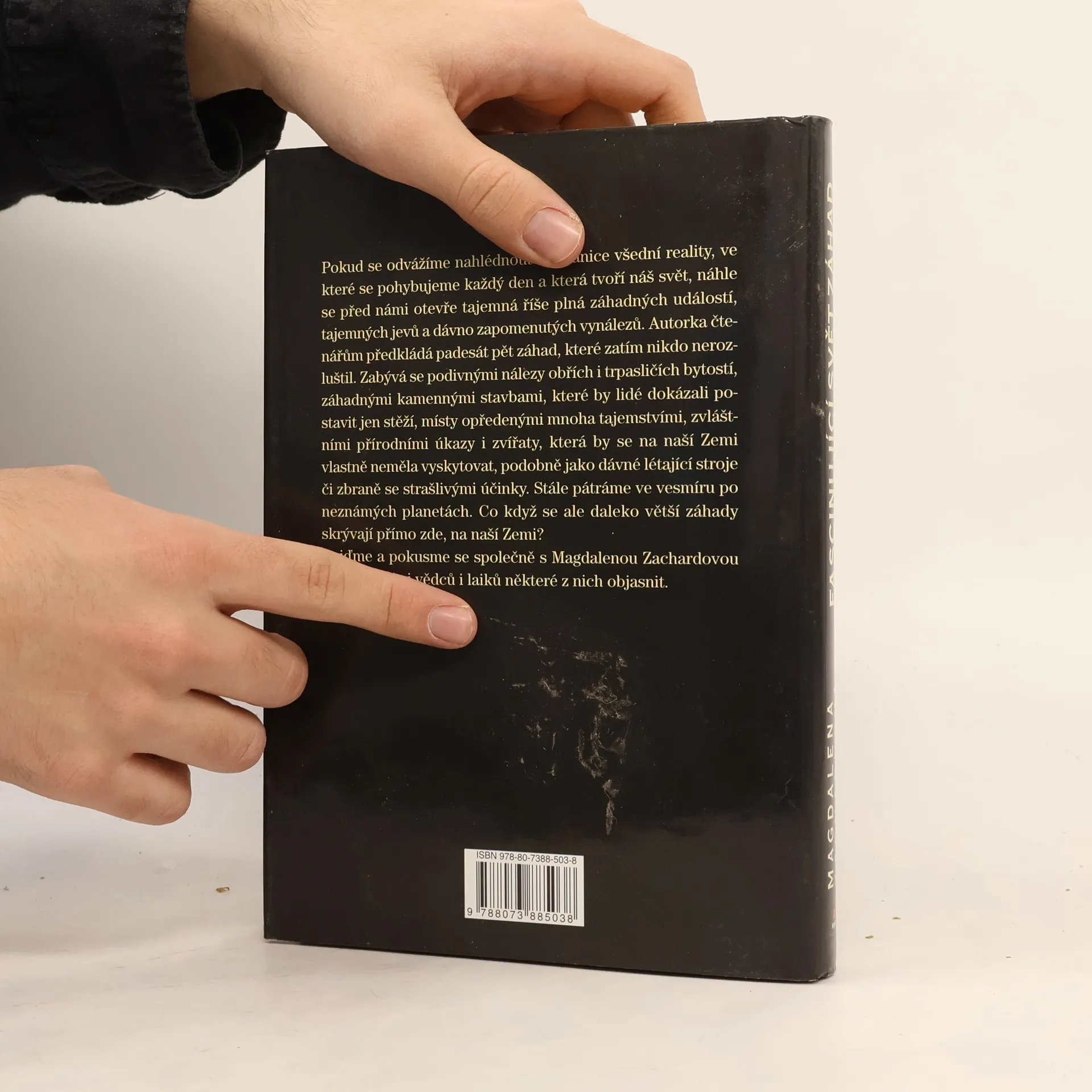 Pokud se odvážíme nahlédnout za hranice všední reality, ve které se pohybujeme každý den a která tvoří náš svět, náhle se před námi otevře tajemná říše plná záhadných událostí, tajemných jevů a dávno zapomenutých vynálezů. Autorka čtenářům předkládá padesát pět záhad, které zatím nikdo nerozluštil. Zabývá se podivnými nálezy obřích i trpasličích bytostí, záhadnými kamennými stavbami, které by lidé dokázali postavit jen stěží, místy opředenými mnoha tajemstvími, zvláštními přírodními úkazy i zvířaty, která by se na naší Zemi vlastně neměla vyskytovat, podobně jako dávné létající stroje či zbraně se strašlivými účinky. Stále pátráme ve vesmíru po neznámých planetách. Co když se ale daleko větší záhady skrývají přímo zde, na naší Zemi? Pojďme a pokusme se společně s Magdalenou Zachardovou a svědectvími vědců i laiků některé z nich objasnit.