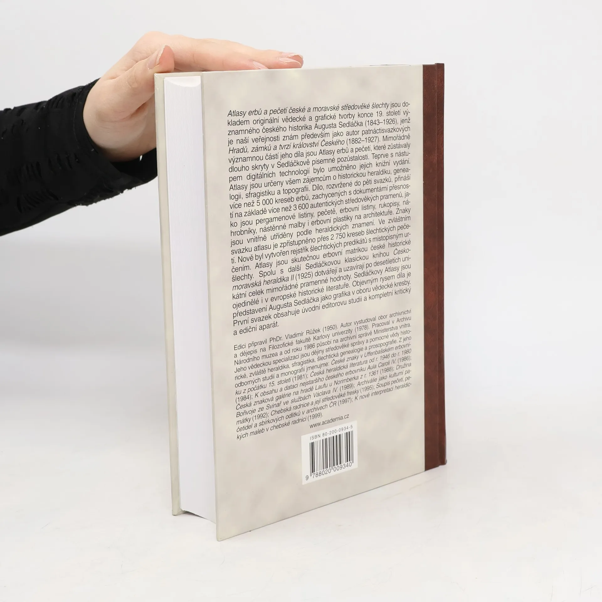 Atlasy erbů a pečetí české a moravské středověké šlechty jsou dokladem originální vědecké a grafické tvorby konce 19. století významného českého historika Augusta Sedláčka (1843-1926). Atlasy jsou určeny všem zájemcům o historickou heraldiku, genealogii, sfragistiku a topografii. Dílo, rozvržené do pěti svazků, přináší více než 5000 kreseb erbů, zachycených s dokumentární přesností na základě více než 3600 autentických středověkých pramenů, jako jsou pergamenové listiny, pečetě, erbovní listiny, rukopisy, náhrobníky, nástěnné malby i erbovní plastiky na architektuře. Znaky jsou vnitřně utříděny podle heraldických znamení. První svazek obsahuje úvodní editorovu studii a kompletní kritický a ediční aparát. Zpracoval a k vydání připravil Vladimír Růžek. ISBN 80-200-0933-7 (soubor, 5 svazků)