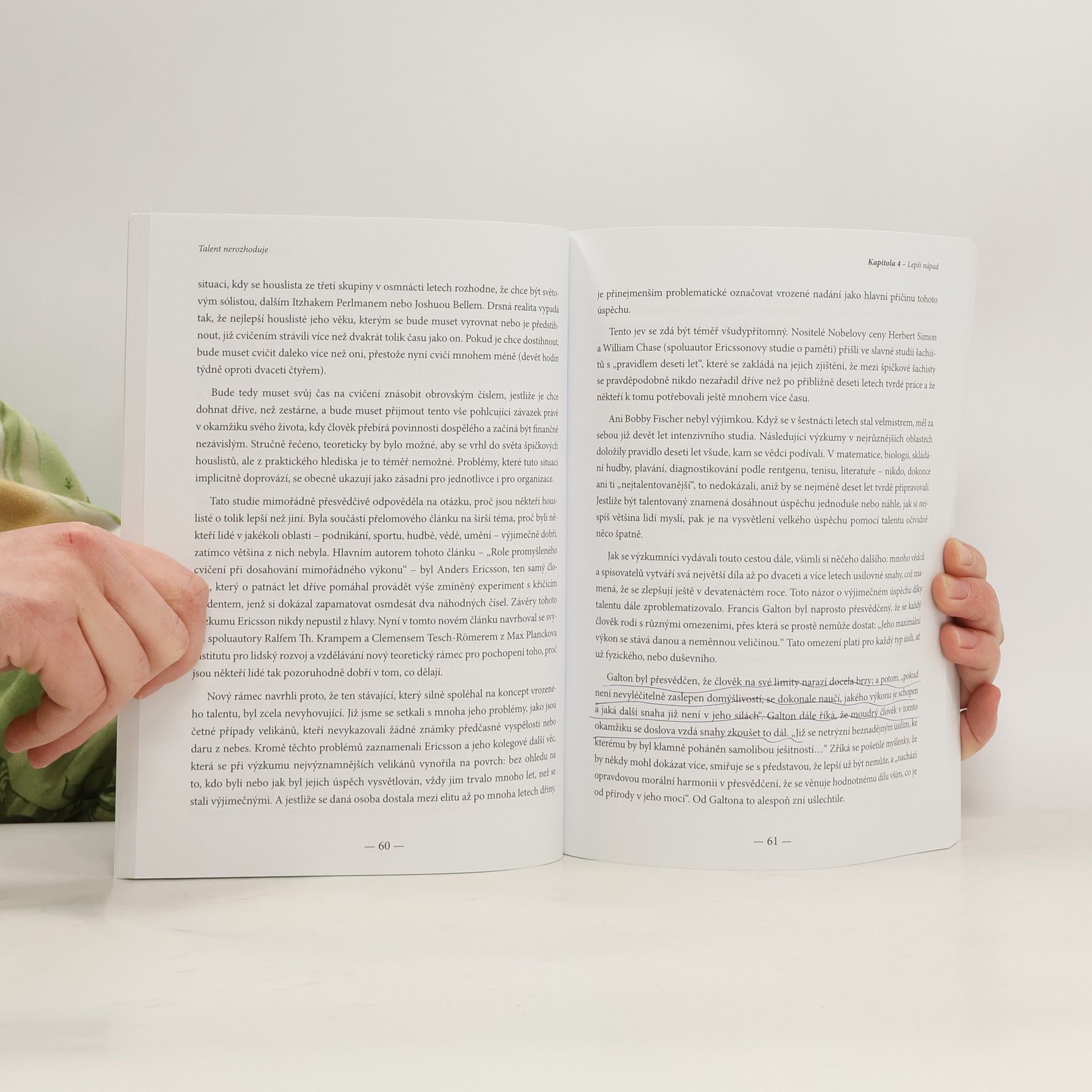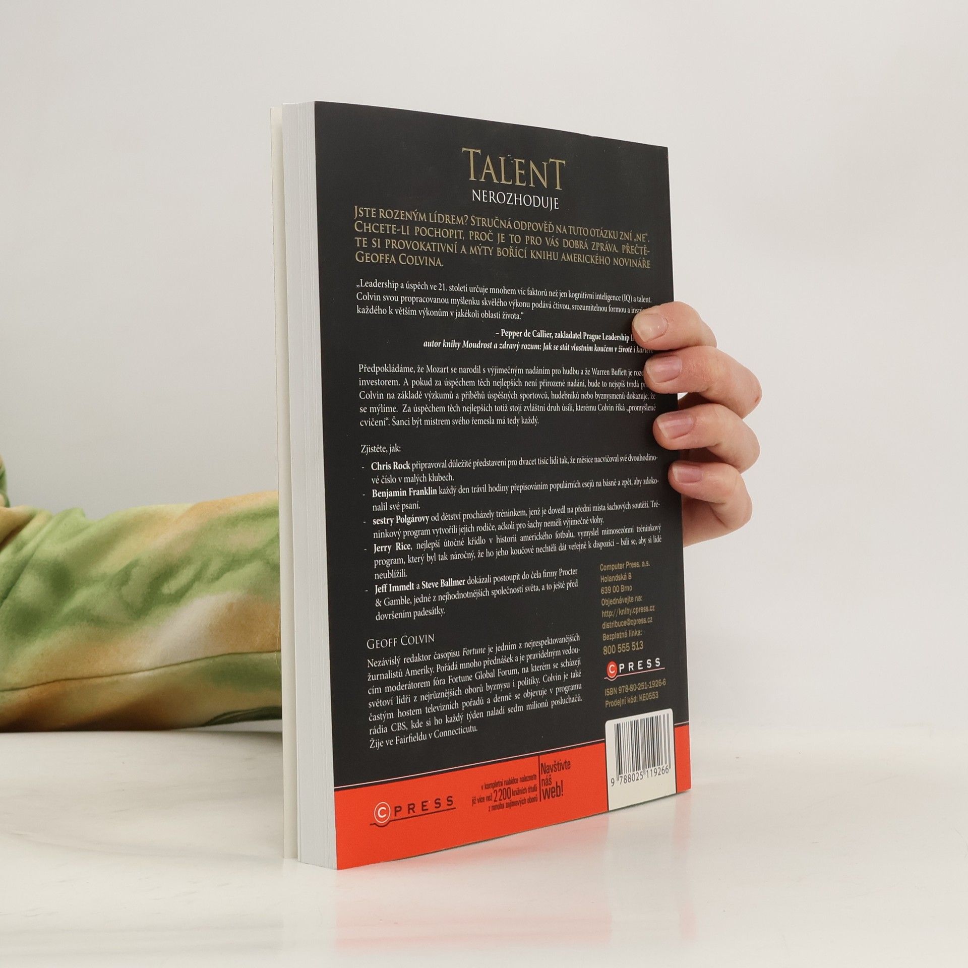 Čím se ti nejlepší skutečně liší od ostatních Jste zrození pro roli vůdce? Stručná odpověď na tuto otázku zní "ne". Chcete-li pochopit, proč je to pro vás dobrá zpráva, přečtěte si provokativní a mýty bořící knihu amerického novináře Geoffa Colvina. Předpokládáme, že Mozart se narodil s výjimečným nadáním pro hudbu, stejně jako Warren Buffett má buňky na úspěšné investování. A pokud za úspěchem těch nejlepších není přirozené nadání, bude to nejspíš tvrdá práce. Colvin na základě výzkumů a příběhů úspěšných sportovců, hudebníků nebo byznysmenů dokazuje, že se mýlíme. Za úspěchem těch nejlepších totiž stojí zvláštní druh úsilí, kterému Colvin říká "promyšlené cvičení". Šanci má tedy každý.