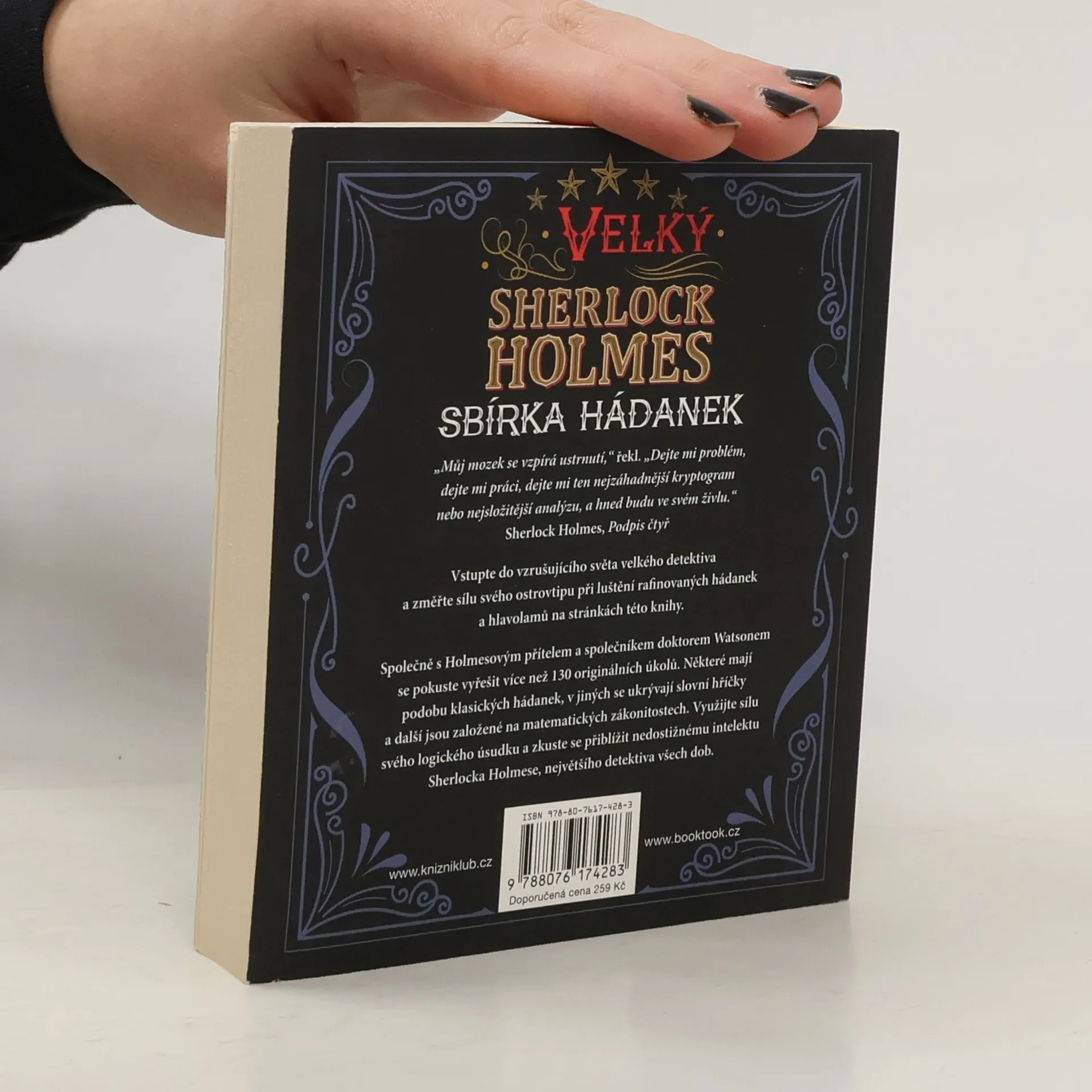 Vítejte ve vzrušujícím a zábavném světě Sherlocka Holmese! Tato kniha je plná doslova ďábelských výzev, které budou vyžadovat váš důvtip. Připojte se k Holmesovu příteli doktoru Watsonovi a pokuste se spolu s ním vyřešit více než 130 jedinečných úkolů. Někdy se jedná o hádanky, jindy o hru se slovy, v některých případech musíte použít matematické principy. Použijte sílu svého logického myšlení a poměřte se s nepřekonatelným intelektem Sherlocka Holmese, největšího detektiva všech dob.