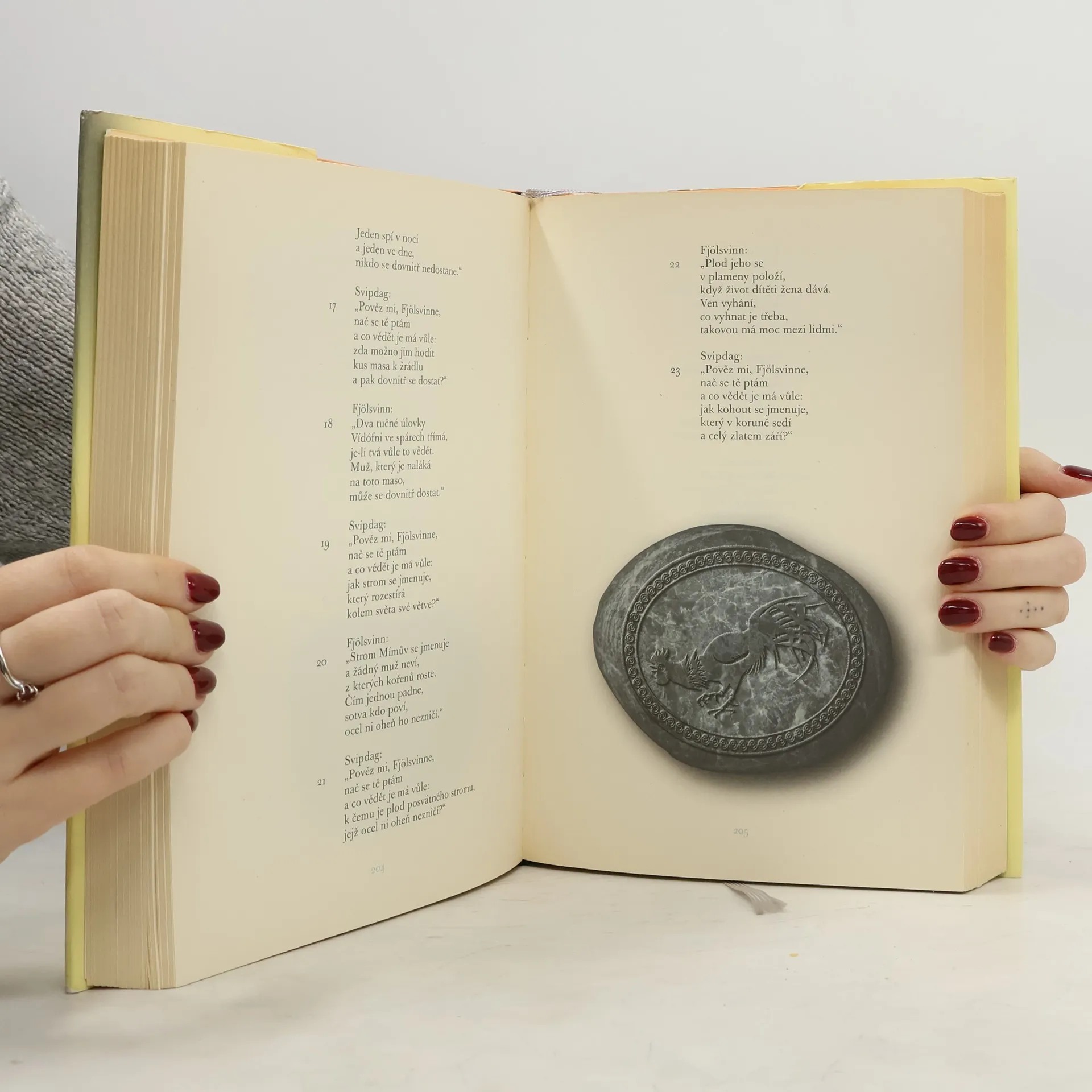 Revidovaný překlad slavného středověkého rukopisu, obsahujícího nejstarší a nejvelkolepější germánské mytické a hrdinské písně. Mytická část vypráví islandské ságy, příběhy severských božstev od vzniku světa až po jeho soumrak, např. o moudrém Ódinovi, o zamilovaném Frejovi, o rozlíceném Thórovi, o šlechetném Baldrovi a o proradném Lokim. Hrdinská část pojednává o životech a skutcích lidí, jako byli Sigurd nebo Brynhilda, héroů známých i z německé mytologie a proslavených Wagnerovými operami. Písně hrdinské vznikly přímo na Islandu. Jedná se o tzv. Poetickou Eddu, na rozdíl od tzv. Prozaické Eddy autora z 13. st. Snoriho Sturlusona, která je spíše učebnicí poetiky pro začínající skaldy – na verších svých i starších skaldů vysvětluje rytmus, metriku atd., prostě „jak se dělá báseň“. Edda obsahuje tzv. eddické písně, které nemají autora, pocházejí z různých období a písemně byly zaznamenány v 13. století v Kodexu Regius v Královské knihovně v Kodani. G. Neckel je vydal jako vydavatel. Překlad Ladislava Hegera z islandštiny zrevidovala a doslovem opatřila Helena Kadečková.