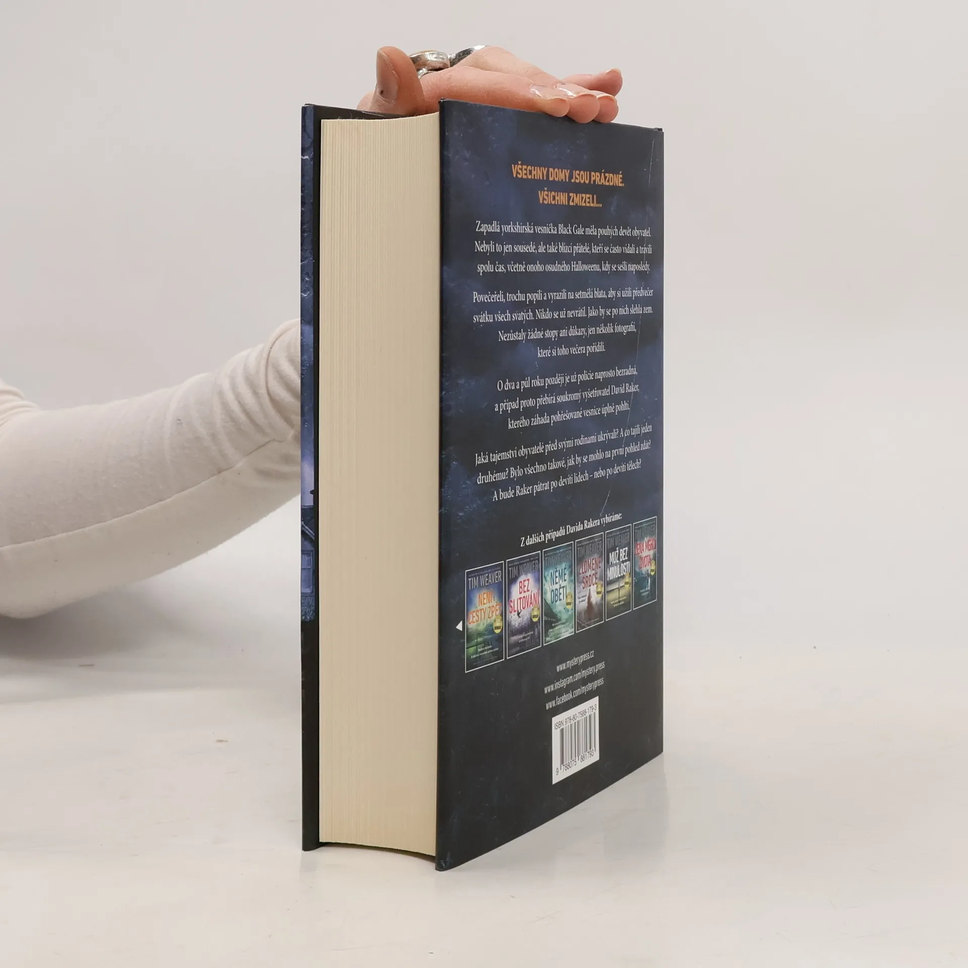 VŠECHNY DOMY JSOU PRÁZDNÉ. VŠICHNI ZMIZELI… Zapadlá yorkshirská vesnička Black Gale měla pouhých devět obyvatel. Nebyli to jen sousedé, ale také blízcí přátelé, kteří se často vídali a trávili spolu čas, včetně onoho osudného Halloweenu, kdy se sešli naposledy. Povečeřeli, trochu popili a vyrazili na setmělá blata, aby si užili předvečer svátku všech svatých. Nikdo se už nevrátil. Jako by se po nich slehla zem. Nezůstaly žádné stopy ani důkazy, jen několik fotografií, které si toho večera pořídili. O dva a půl roku později je už policie naprosto bezradná, a případ proto přebírá soukromý vyšetřovatel David Raker, kterého záhada pohřešované vesnice úplně pohltí. Jaká tajemství obyvatelé před svými rodinami ukrývali? A co tajili jeden druhému? Bylo všechno takové, jak by se mohlo na první pohled zdát? A bude Raker pátrat po devíti lidech – nebo po devíti tělech?