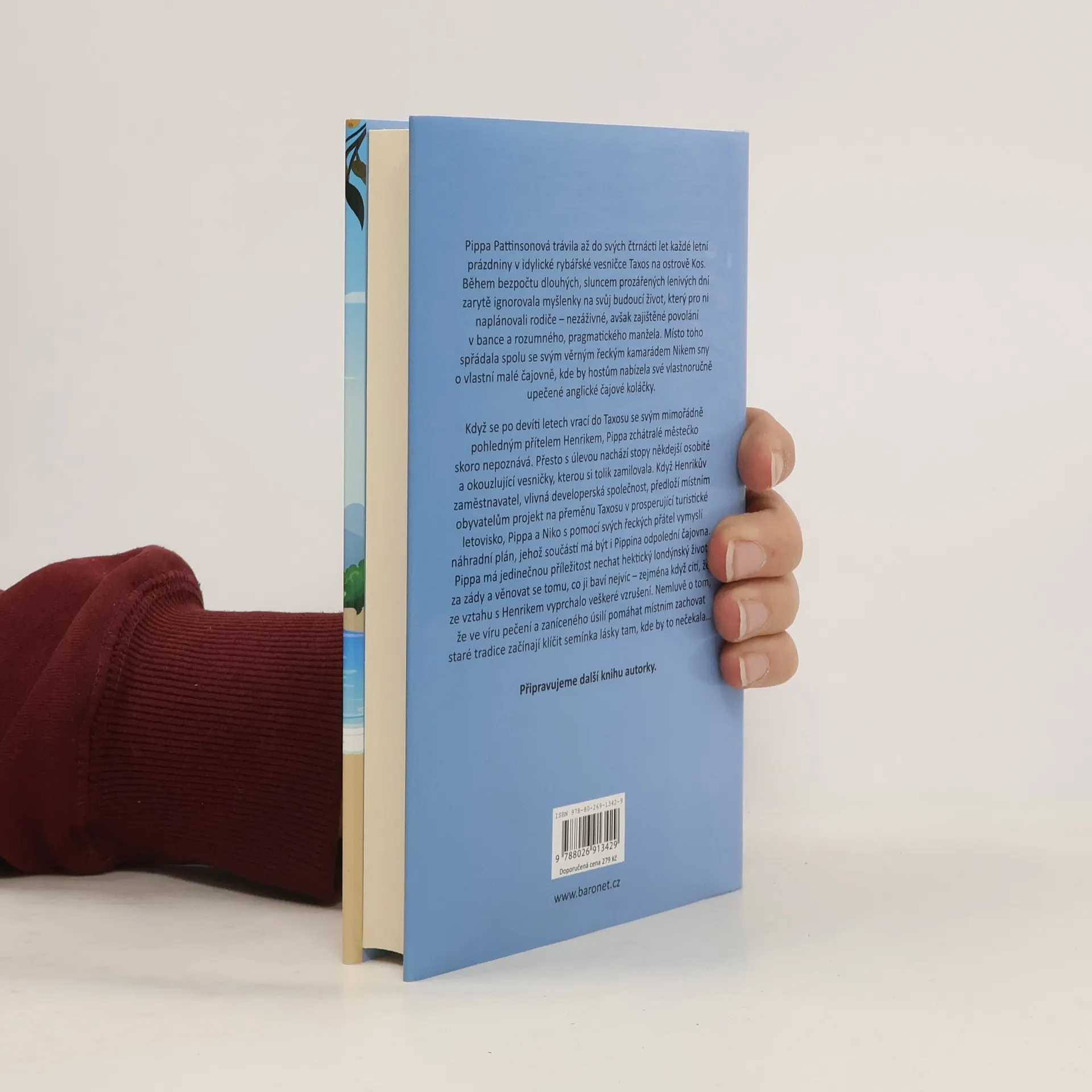 Pippa Pattinsonová trávila od malička až do svých čtrnácti let každé letní prázdniny v idylické rybářské vesničce Taxos na ostrově Kos. Během bezpočtu dlouhých, sluncem prozářených lenivých dní zarytě ignorovala myšlenky na svůj budoucí život, který pro ni naplánovali její rodiče – nezáživné, avšak zajištěné povolání účetní v bance a rozumného, pragmatického manžela. Místo toho, spolu se svým věrným řeckým kamarádem Nikem spřádala sny o vlastní malé čajovně, kde by hostům nabízela své vyhlášené, vlastnoručně upečené anglické čajové koláčky. Když se po devíti letech vrací do Taxosu se svým mimořádně pohledným snoubencem Henrikem, Pippa stěží poznává zchátralé městečko. Přesto s úlevou nachází stopy někdejší osobité a okouzlující vesničky, kterou si tolik zamilovala. Když Henrikův zaměstnavatel, vlivná developerská společnost, předloží místním obyvatelům projekt na přeměnu Taxosu v prosperující turistické letovisko, Pippa a Niko s pomocí svých řeckých přátel vymyslí náhradní plán, jehož součástí má být i její odpolední čajovna. Pippa má jedinečnou příležitost nechat hektický londýnský život za zády – zejména když cítí, že ze vztahu s Henrikem vyprchalo veškeré vzrušení – a věnovat se tomu, co ji baví nejvíc. Nemluvě o tom, že ve víru pečení a jejího zaníceného úsilí pomáhat místním při zachování starých tradic začínají klíčit semínka lásky tam, kde by to nejméně čekala…
