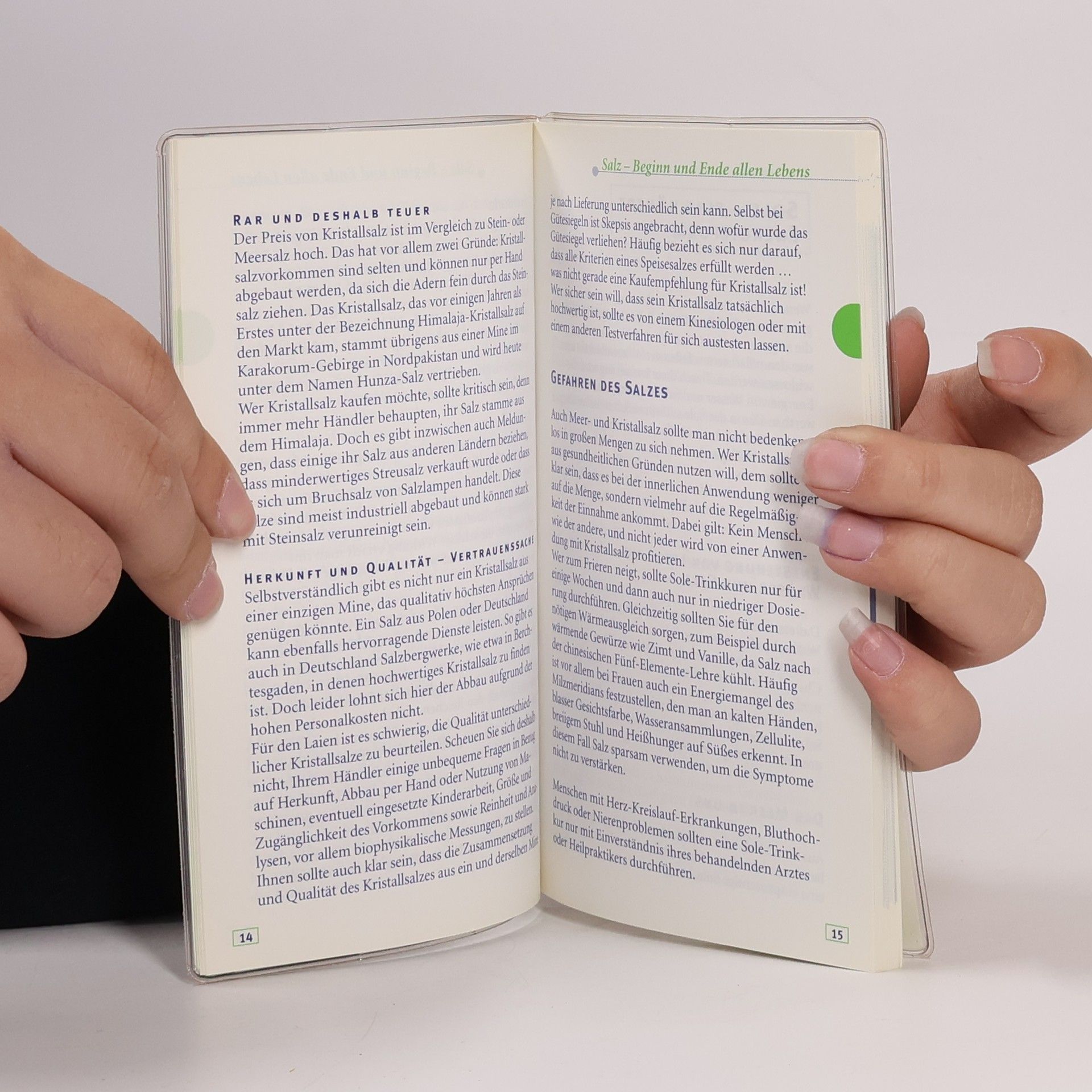 Kristallsalz gilt als das beste Natursalz. Es besteht im Gegensatz zum raffinierten Kochsalz nicht nur aus Natrium und Chlorid, sondern aus 82 weiteren Elementen. Diese Vielzahl an natürlichen Mineralien und Spurenelementen macht Kristall-salz für die Gesundheit so wertvoll. Genau aus diesen Stoffen besteht auch der menschliche Körper. Kombiniert mit hoch-wertigem Wasser kann Kristallsalz einfach zur Selbsthilfe eingesetzt werden. In diesem Kompass werden alle Anwendungsformen wie Sole-Trinkkuren, Bäder, Umschläge oder Inhalation übersichtlich dargestellt. Die An- wendungsgebiete sind benutzerfreundlich von A bis Z sortiert.