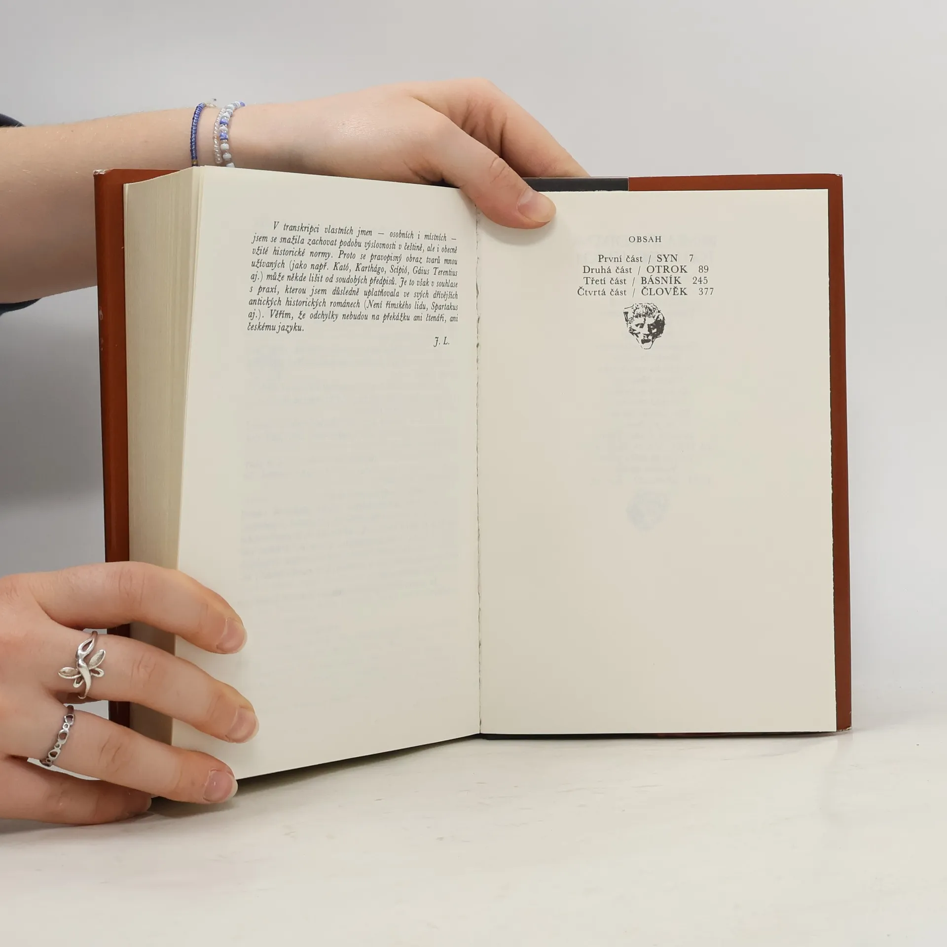 Román z prostředí starého Říma v období mezi druhou a třetí punskou válkou. Hlavním hrdinou románu je Publius Terentius Afer, jehož komedie, psané podle řeckých vzorů, ovlivnily spolu s díly Pautovými a Aristofanovými vývoj světového dramatického umění. V útlém dětství byl spolu se synky nejbohatších rodin Kartága poslán vítězným Římanům darem jako otrok a jeho jediným štěstím bylo, že si jej vybral senátor Terentius Lucanus, jenž nejen že mu umožnil stejné vzdělání jako vlastnímu synovi, ale před smrtí jej propustil na svobodu. Život v domě Scipionově v kruhu nejvzdělanějších mužů Říma pak ještě více vytříbil chlapcův talent, takže z malého kartáginského otroka vyrostl nakonec jeden z nejslavnějších autorů římských komedií, píšící elegantní a vzornou latinou. (nakladatel)
