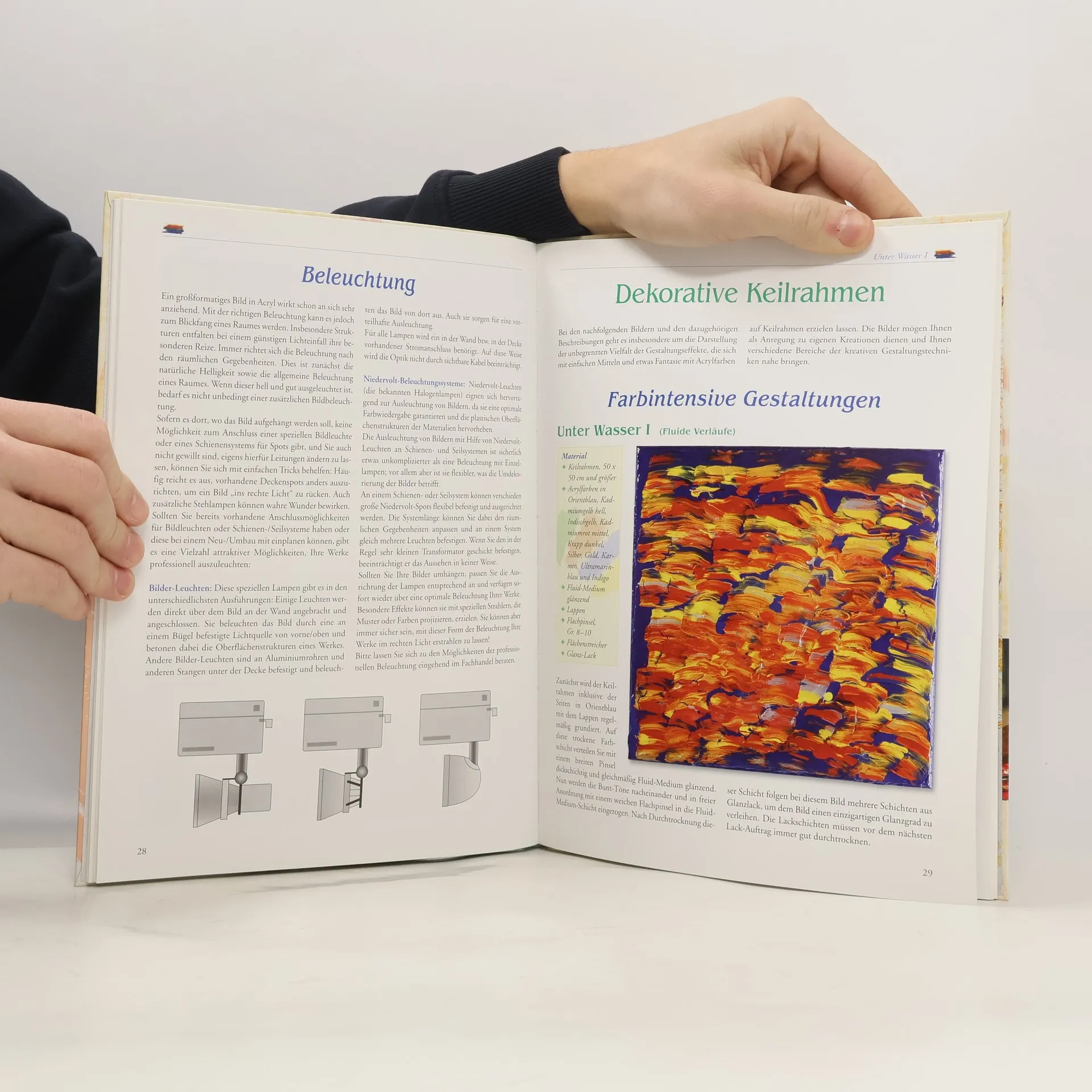 Großformatige Acryl-Bilder können farblich wie gestalterisch positiv zur Gesamtwirkung eines Raumes beitragen. Man kann diese Bilder individuell mit Acrylfarbe und Acryl-Hilfsmitteln gestalten, wobei Farben, Strukturen und Formen wichtiger sind als der reine malerische Ausdruck. Die Anleitungen in diesem Buch sind auch für absolut Ungeübte im Umgang mit Pinsel und Farbe gedacht. Praktische und detaillierte Anleitungen führen zu erstaunlichen Ergebnissen und wecken die Lust an eigenen Experimenten.