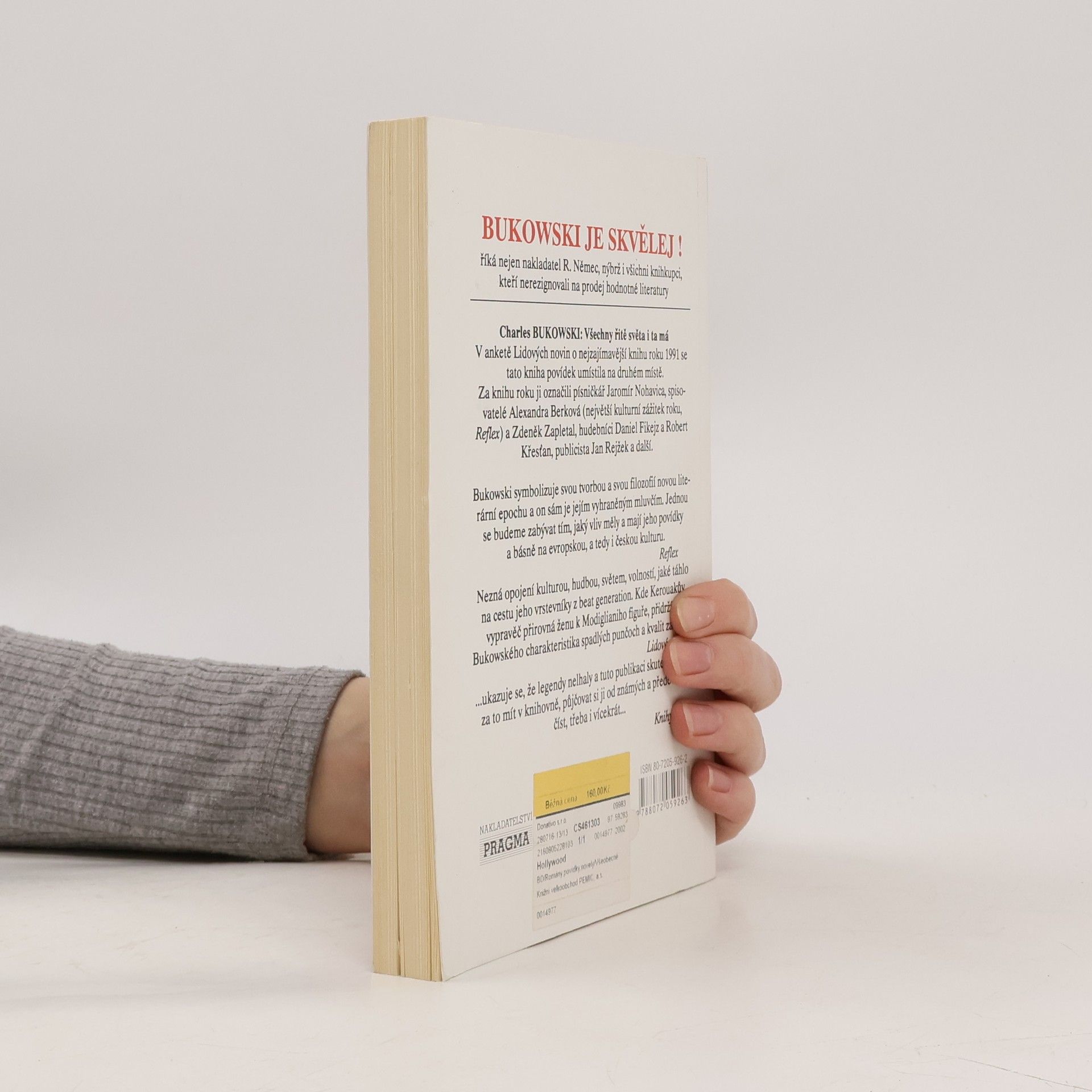 Bukowski symbolizuje svou tvorbou a svou filozofií novou literární epochu a on sám je jejím vyhraněným mluvčím. Nezná opojení kulturou, hudbou, světem, volností, jaké táhlo na cestu jeho vrstevníky z beat generation. Kde Kerouakův vypravěč přirovnává ženu k Modiglianiho figuře, přidrží se Bukowského charaktika spadlých punčoch a kvalit zadnice. V knize Hollywood píše Bukowského dvojník Chinaski scénář pro jednu hollywoodskou společnost a je vtažen do světa, ve kterém se necítí dobře. Proto jej značně osobitě odmítá.
