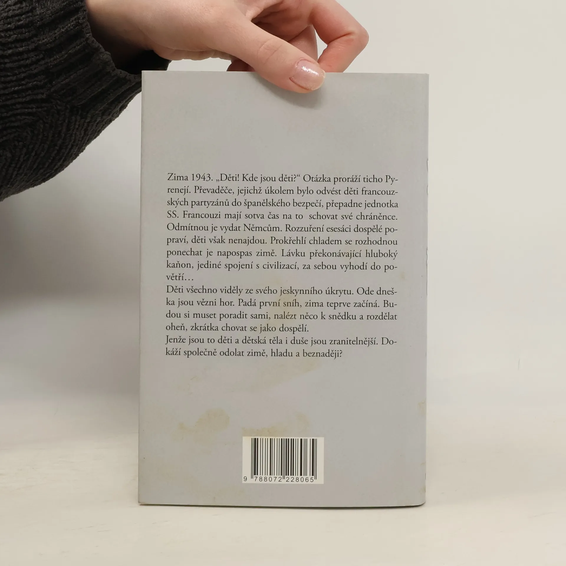 Zima 1943. Děti! Kde jsou děti? Otázka proráží ticho Pyrenejí. Převaděče, jejichž úkolem bylo odvést děti francouzských partyzánů do španělského bezpečí, přepadne jednotka SS. Francouzi mají sotva čas na to, schovat své chráněnce. Odmítnou je vydat Němcům. Rozzuření esesáci dospělé popraví, děti však nenajdou. Prokřehlí chladem se rozhodnou ponechat je napospas zimě. Lávku překonávající hluboký kaňon, jediné spojení s civilizací, za sebou vyhodí do povětří Děti všechno viděly ze svého jeskynního úkrytu. Ode dneška jsou vězni hor. Padá první sníh, zima teprve začíná. Budou si muset poradit samy, nalézt něco k snědku a rozdělat oheň, zkrátka chovat se jako dospělí. Jenže jsou to děti a dětská těla i duše jsou zranitelnější. Dokáží společně odolat zimě, hladu a beznaději?