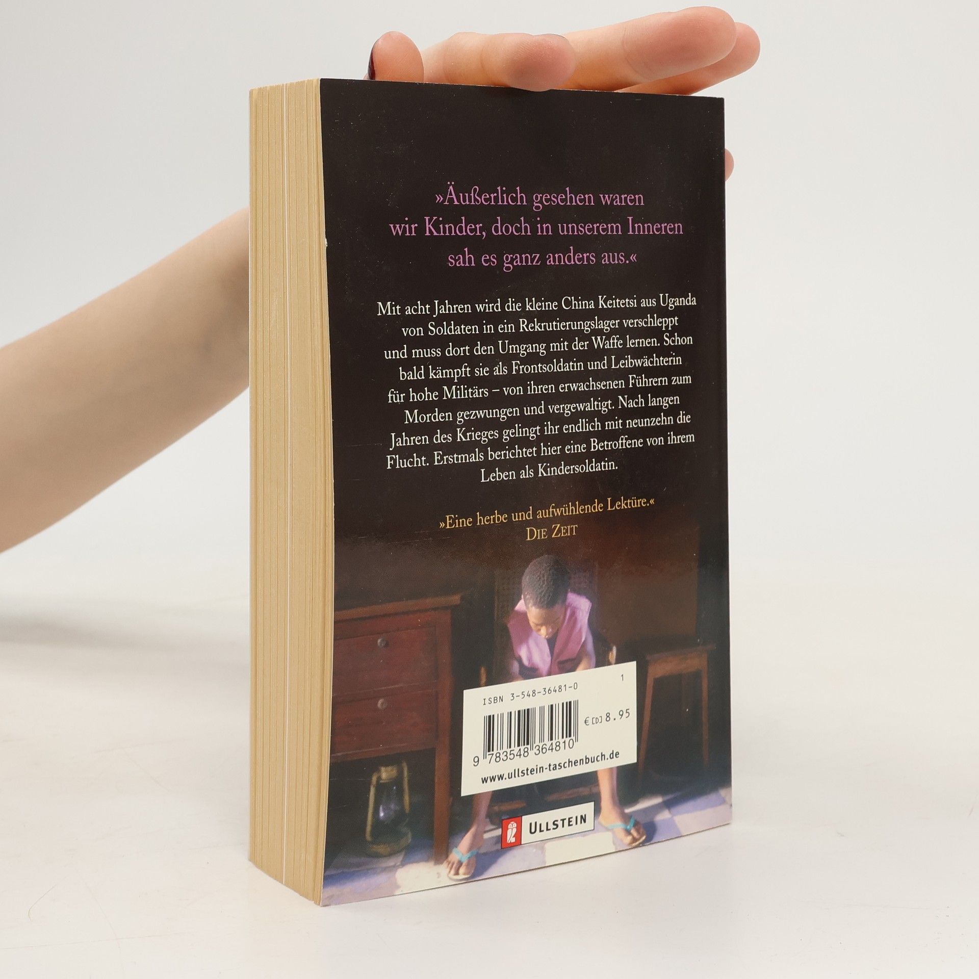 Die achtjährige China Keitetsi aus Uganda wird von Soldaten in ein Rekrutierungslager verschleppt und lernt dort den Umgang mit der Waffe. Schon bald kämpft sie als Frontsoldatin und Leibwächterin für hohe Militärs, von ihren erwachsenen Führern zum Morden gezwungen und vergewaltigt. Nach Jahren des Krieges und Missbrauchs gelingt ihr im Alter von neunzehn Jahren endlich die Flucht. Erstmals berichtet hier eine Betroffene von ihrem Leben als Kindersoldatin.