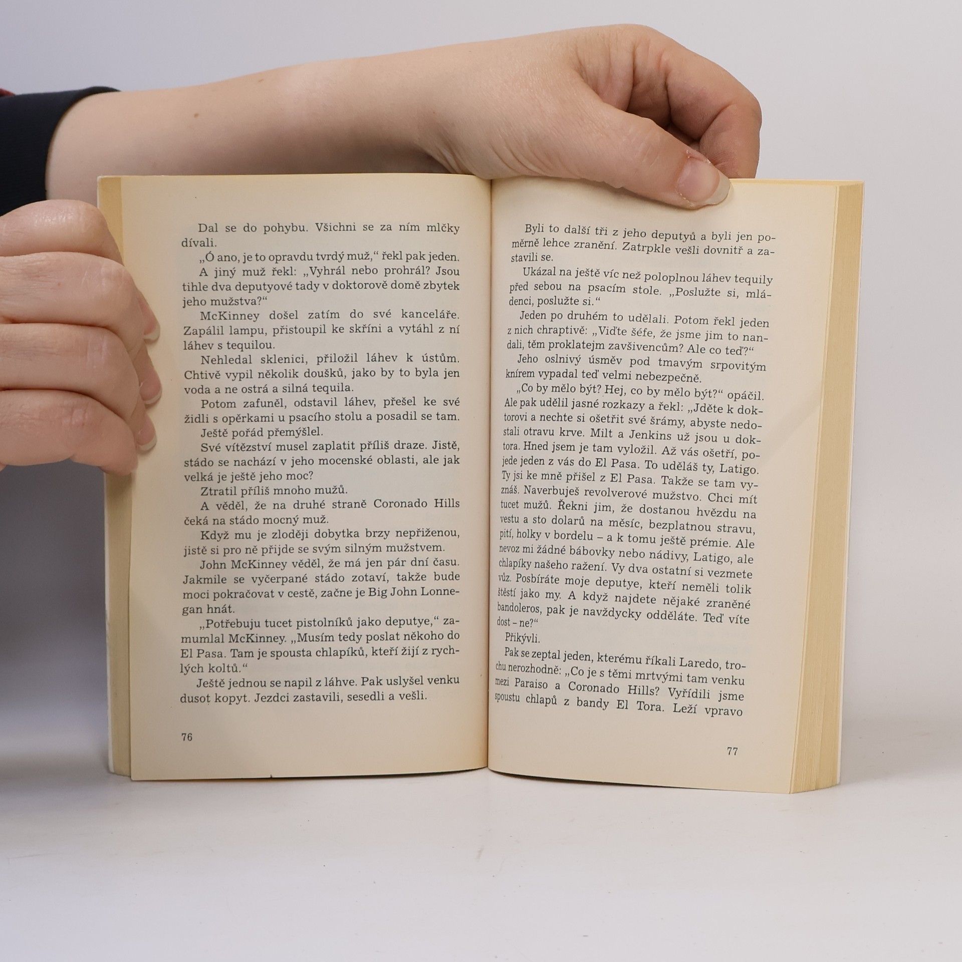 Rána, kterou si Oven Finn odnesl z boje se psy Jima Lonnegana, se zanítila a on naléhavě potřeboval pomoc. Našel jí u doni Elvíry Alderové ve stříbrném městě Paraisu. Krasavice však byla ledově chladná obchodnice a žádala od Ovena protislužbu za svou pomoc. Měl jí chránit před maršálem McKinneyem, mužem, který měl ve městě na Rio Grande rozhodující slovo. Oven Finn si ještě nikdy nenechal nic darovat, a tak jí slíbil pomoc. Teprve později se zapletl do....
