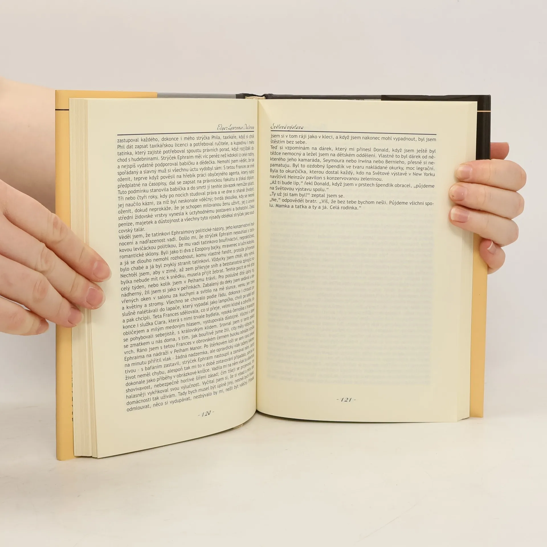 Sociální román s výraznými autobiografickými prvky je situovaný do třicátých let 20. století v New Yorku. Za autora v jeho knize hovoří čtyř až devítiletý chlapec a jeho vzpomínky se prolínají s pohledem jeho bratra, matky a dalších blízkých osob. Z příběhů z dětství, vzpomínek a vyprávění rodinných příslušníků vyrůstá obraz života nejen této rodiny, ale i barvitá mozaika společenského dění ve třicátých letech ve Spojených státech, symbolicky vrcholící právě Světovou výstavou. Kniha náročného čtenáře zaujme a přesvědčí, že autor je i v této lyričtější poloze vynikajícím prozaikem.