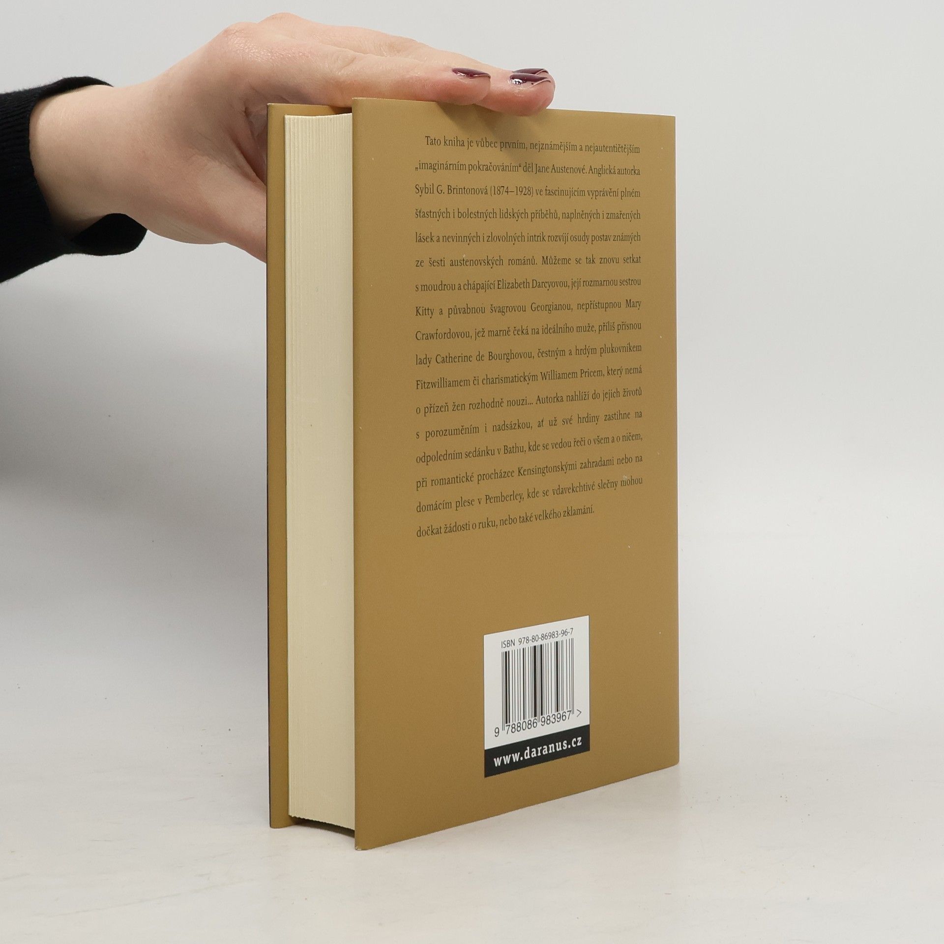Pokračování příběhů Jane Austenové Anglická autorka Sybil G. Brintonová (1874-1928) ve fascinujícím vyprávění plném šťastných i bolestných lidských příběhů, naplněných i zmařených lásek a nevinných i zlovolných intrik rozvíjí osudy postav známých ze šesti austenovských románů. Můžeme se tak znovu setkat s moudrou a chápající Elizabeth Darcyovou, její rozmarnou sestrou Kitty a půvabnou švagrovou Georgianou, nedostupnou Mary Crowfordovou, jež marně čeká na ideálního muže, příliš přísnou lady Catherine de Bourghovou, čestným a hrdým plukovníkem Fitzwilliamem či charismatickým Williamem Pricem, který nemá o přízeň žen rozhodně nouzi... Autorka nahlíží do jejich životů s porozuměním i nadsázkou, ať už své hrdiny zastihne na odpoledním sedánku v Bathu, kde se vedou řeči o všem a o ničem, při romantické procházce Kensingtonskými zahradami nebo na domácím plese na Pemberley, kde se vdavekchtivé slečny mohou dočkat žádosti o ruku nebo také velkého zklamání