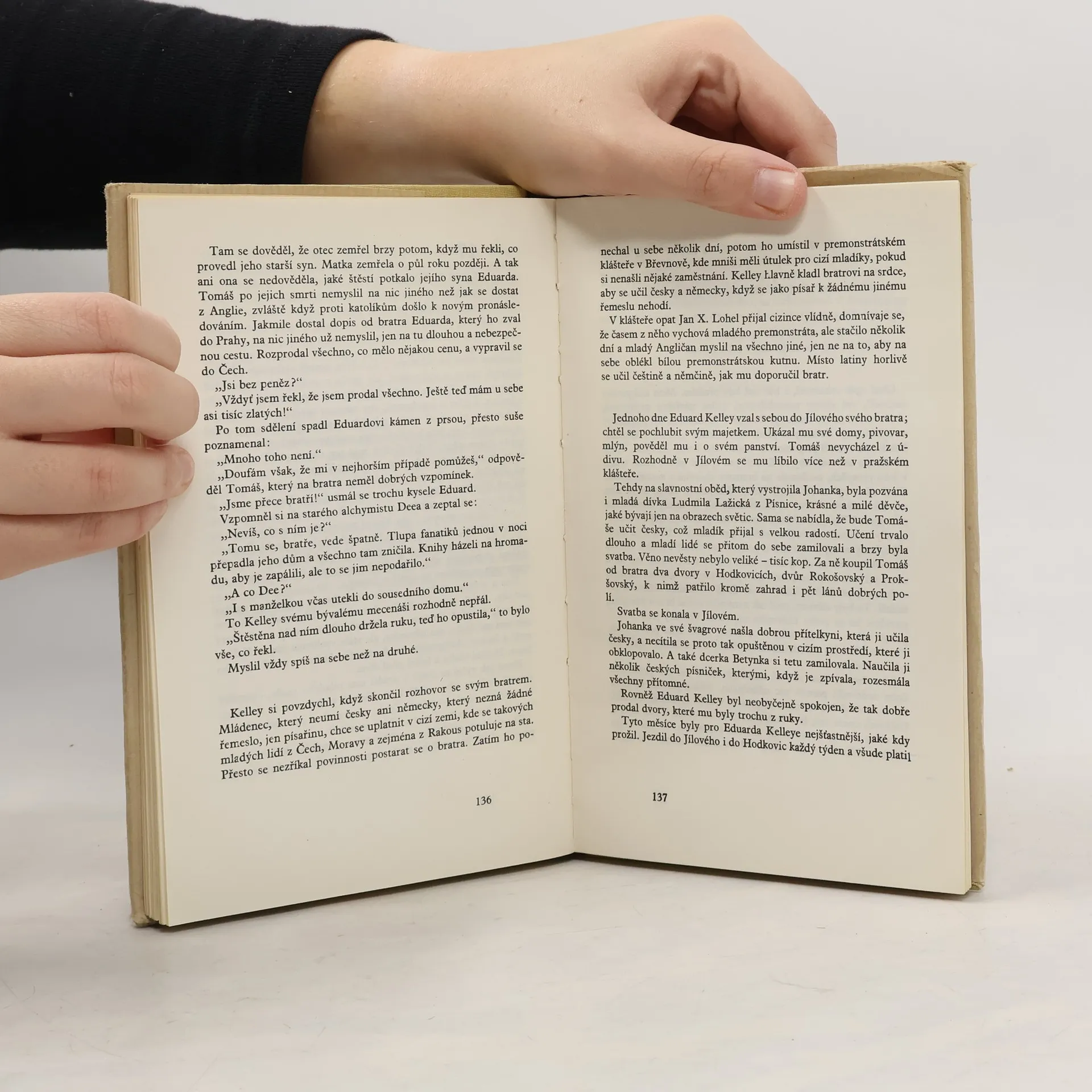 Román Václava Kaplického vypráví o životě Eduarda Kelleyho. V mládí pracoval jako úředník v Anglii a zfalšoval několik listin, aby si vydělal pár grošů. Byl přísně potrestán – uřízli mu obě uši, aby každý, kdo ho potká, věděl, že je to podvodník. Kelley si tedy nechá narůst dlouhé vlasy a z města uteče. Putuje po Anglii a láká ho myšlenka stát se učněm světoznámého alchymisty Johna Deea. John Dee ho přijme a velmi se spolu sblíží. Bere ho dokonce jako svého syna a svěří mu své největší tajemství – výrobu zlata; totiž jak nenápadně vstrčit do hrnce malý kousek zlata a vydávat ho za vyrobené. Odcestují spolu do Čech, kde vládne Rudolf II., velký příznivec všelijakého umění. Dee a Kelley se pohádají a Dee odchází do Třeboně ke dvoru Viléma Rožmberka. Kelley podvádí všechny kolem sebe a je uvězněn. Z vězení se pokusí o útěk, rozdrtí si levé koleno a přijde o levou nohu. Když ho propustí, v podvodech pokračuje a je znovu uvězněn. Druhým útěkem se připraví i o druhou nohu a umírá v nemocnici. Jediní lidé, které opravdu miloval, byla jeho žena Johanka Westonová a její dvě děti. Děj se odehrává v 16. století.