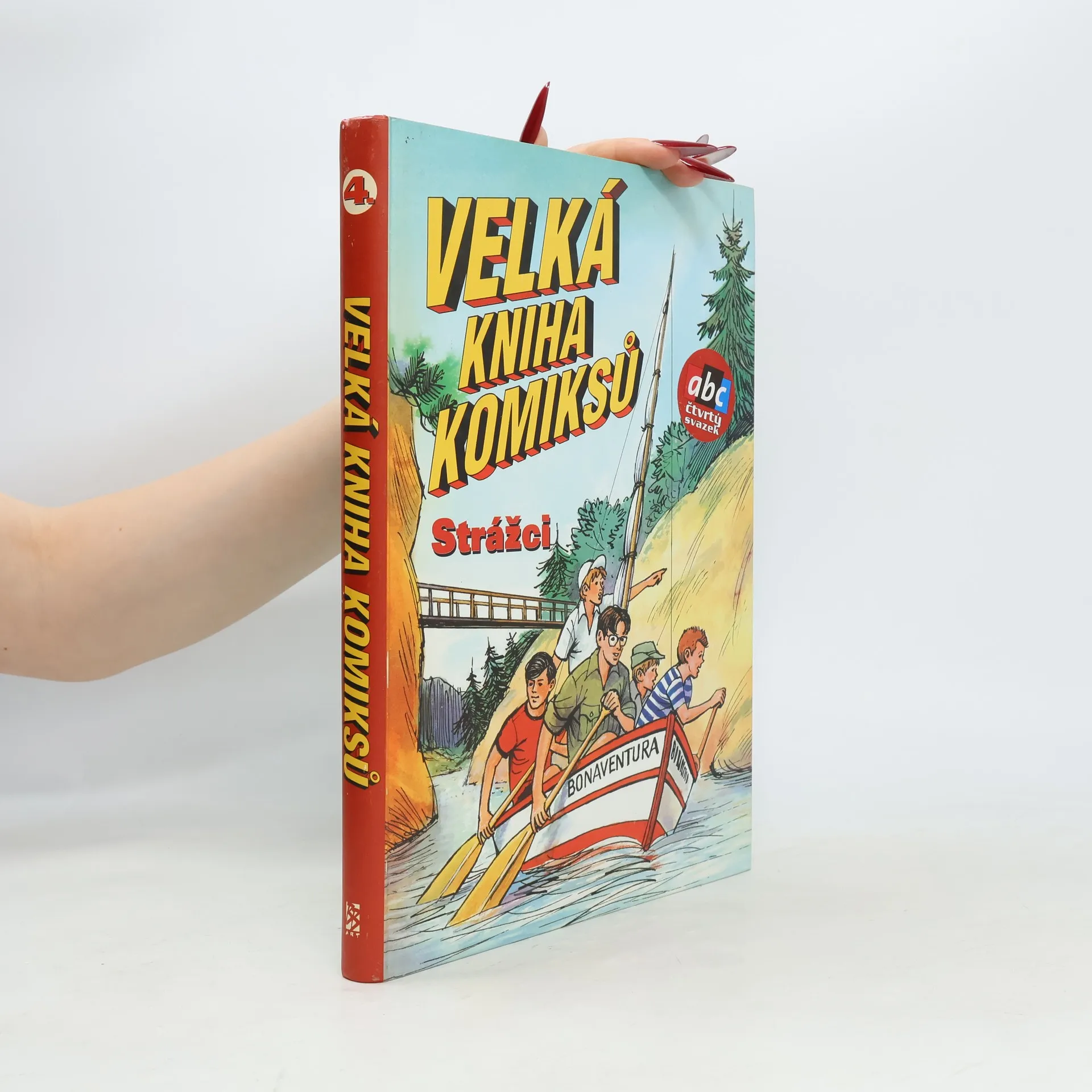 Velká kniha komiksů ABC, čtvrtý svazek (Strážci). Výběr kultovních komiksů z časopisu ABC, tentokrát zaměřený především na souborné vydání kreslených příhod legendárního klubu Strážci, které na stránkách časopisu vycházely s přestávkami od roku 1967 až do roku 1984. Obsah: Strážci – Vlastislav Toman, Libuše Kovaříková (ABC 1966-70) Strážci – Vlastislav Toman, František Kobík (ABC 1972-73) Kronika Strážců – Vlastislav Toman, František Kobík (ABC 1981-84) Strážci z Bílých domů – Vlastislav Toman, Michal Kocián (ABC 2003) Goro – Ochránce makaků – Ivo Pechar, Jiří Petráček (ABC 1995-96) Křížová výprava ke hvězdám – Petr Konupčík, Vladimír Bican (ABC 1999-2000)
