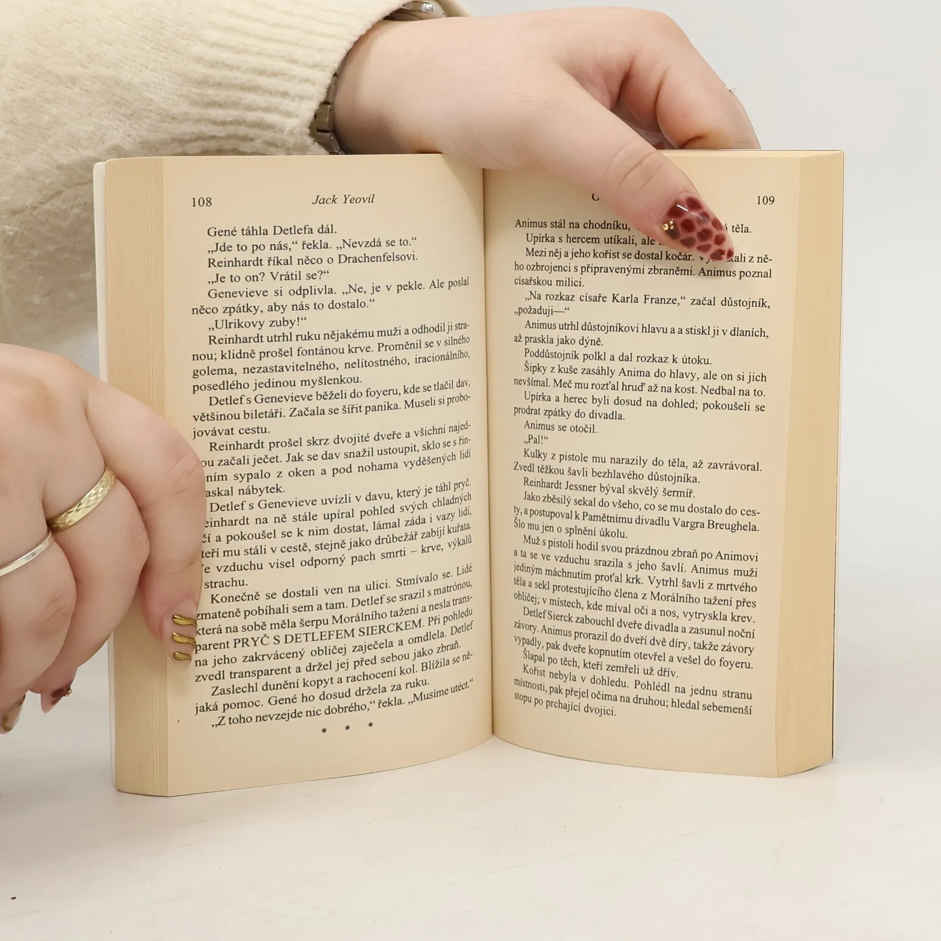 Druhá kniha o Genevieve Dieudonné ze světa Warhammer. Genevieve Dieudonné vypadá jako mladá dívka, ale její věk čítá víc než šest set let. Je totiž upír. Za ta staletí už byla lecčím – od královny po číšnici. V součastné době je milenkou i múzou geniálního dramatika Detlefa Siercka, kterému se konečně podařilo získat vlastní divadlo. Má to jen jeden háček. k historií opředené budově patří i fantom. A stín Drachenfelsu je dost dlouhý, aby dosáhl i do Altdorfu… Temná a strašlivá tajemství se skrývají ve městech Starého světa stejně jako v divočině, která je obklopuje. Genevieve Dieudonné, upíří hrdinka z Drachenfelsu se v této sérii tří propojených novel utkává s protivníky magického i světského druhu, lidskými i zvířecími.