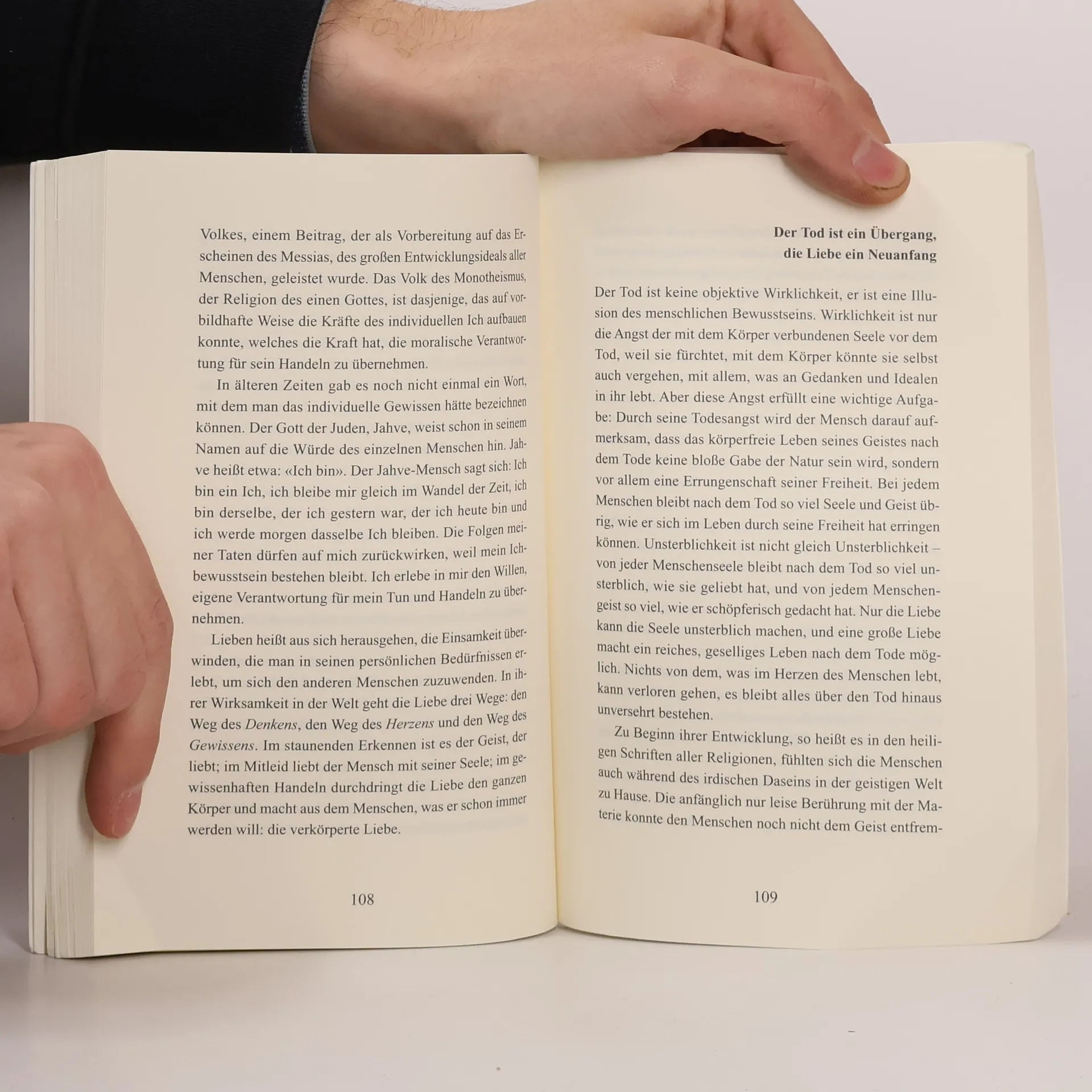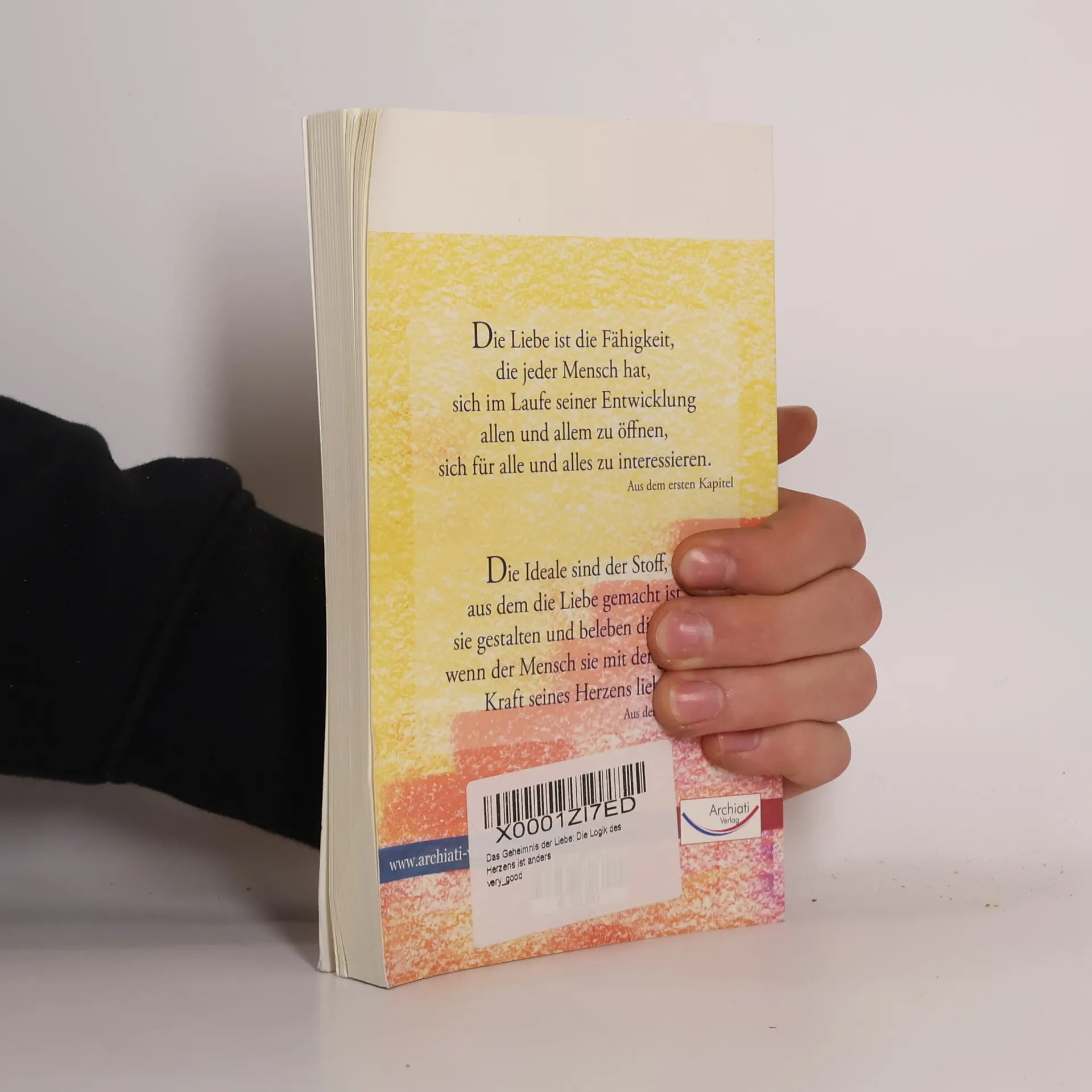Die Liebe ist die Fähigkeit, die jeder Mensch hat, sich im Laufe seiner Entwicklung allen und allem zu öffnen, sich für alle und alles zu interessieren. (Aus dem ersten Kapitel) Die Ideale sind der Stoff, aus dem die Liebe gemacht ist, sie gestalten und beleben die Welt, wenn der Mensch sie mit der ganzen Kraft seines Herzens liebt. (Aus dem fünften Kapitel)