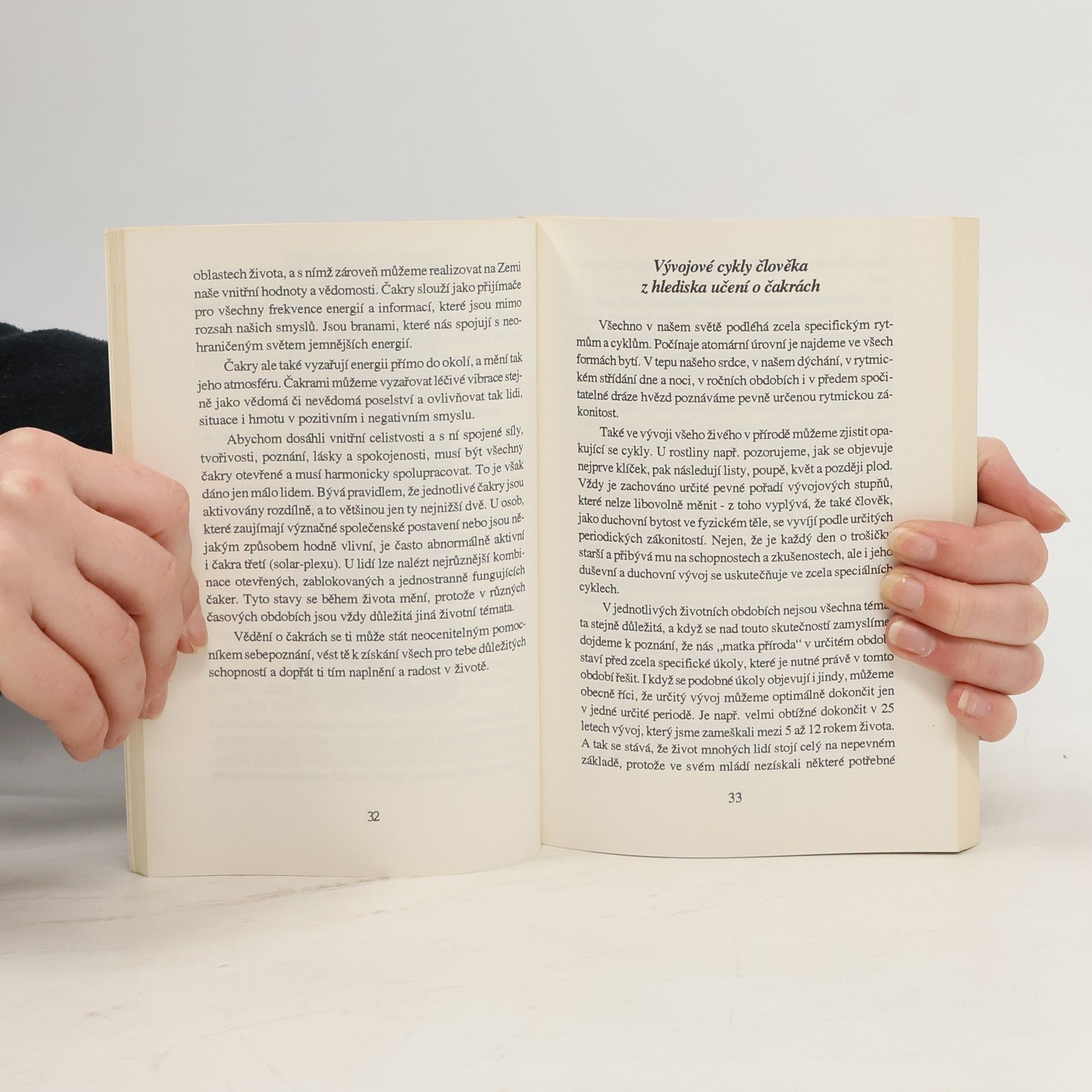 Poznávání energetických center neboli čaker otvírá pohled na působení jemných sil na lidský organismus. Tato kniha názorným a srozumitelným způsobem popisuje funkce a vliv těchto energetických center. Pro praktickou práci s čakrami zde autoři nabízejí celou škálu možností: použití tónů, barev, krystalů a vůní s jejich specifickým účinkem, doplněné meditačními a dechovými cvičeními, masážemi reflexních bodů jednotlivých čaker na chodidlech a přenosem univerzální životní energie. Popisy prožitků přírody, různých druhů jógy a astrologické přiřazení jednotlivých čaker obohacující navíc toto téma zajímavými a inspirativními poznatky.... celý text