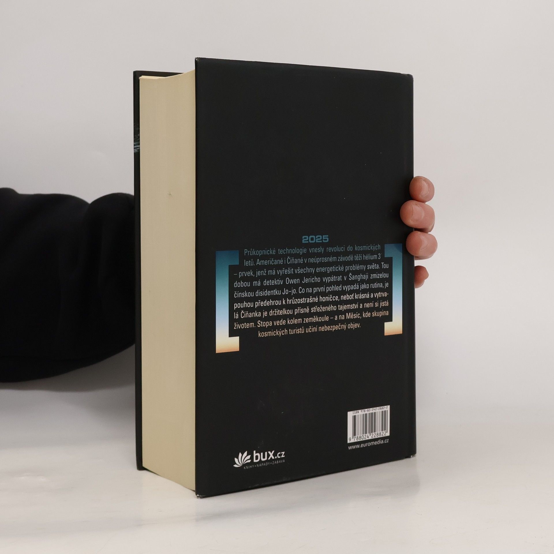 2025. Průkopnické technologie vnesly revoluci do kosmických letů. Američané i Číňané v neúprosném závodě těží hélium 3 – prvek, jenž má vyřešit všechny energetické problémy světa. Tou dobou má detektiv Owen Jericho vypátrat v Šanghaji zmizelou čínskou disidentku Jo-jo. Co na první pohled vypadá jako rutina, je pouhou předehrou k hrůzostrašné honičce, neboť jak krásná, tak zároveň únavná Číňanka je držitelkou přísně střeženého tajemství a není si jista životem. Stopa vede kolem zeměkoule – a na Měsíc, kde skupina kosmických turistů učiní nebezpečný objev.