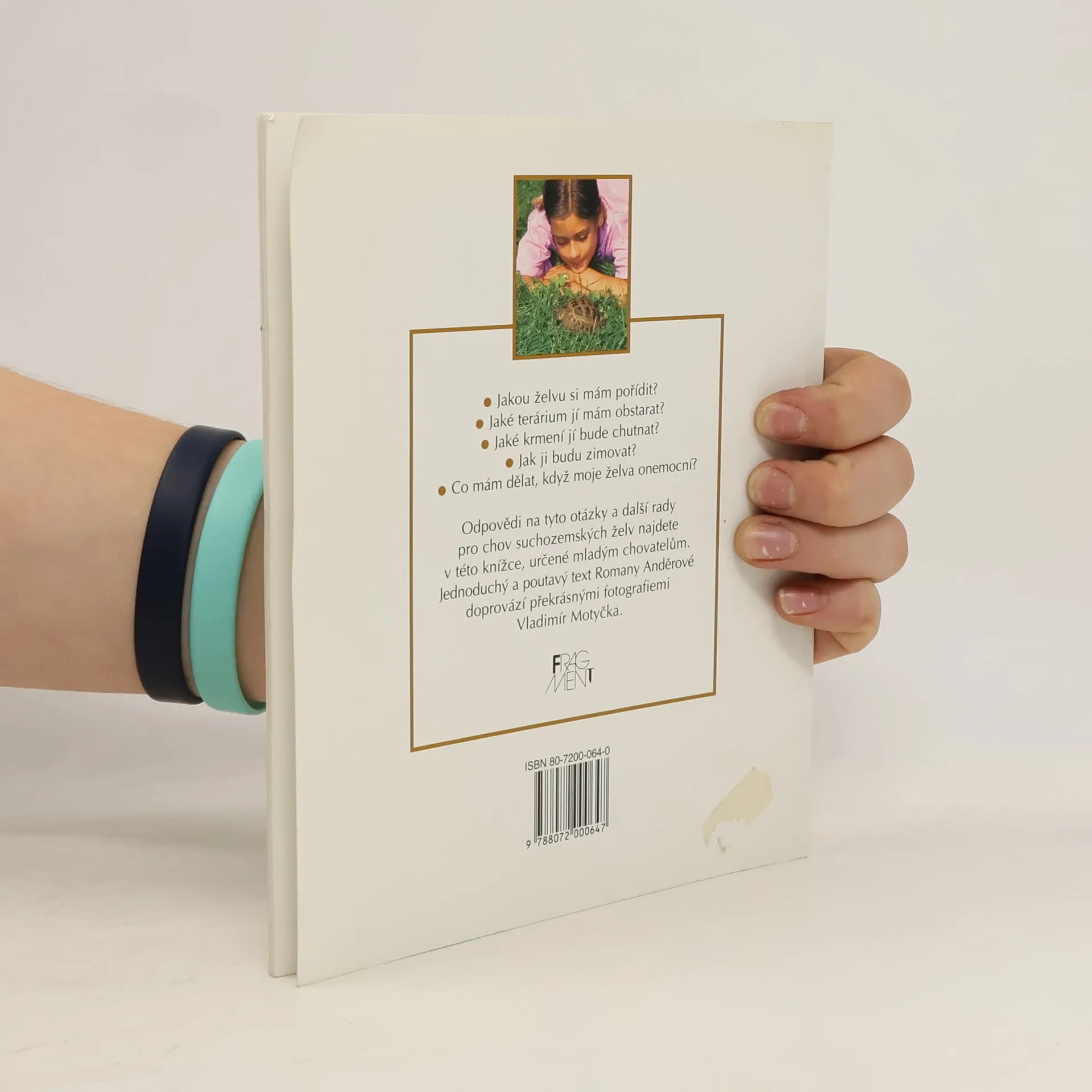 Praktická příručka pro mladé chovatele. Zabývá se podrobně chovem suchozemských želv způsobem přístupným i malým dětem, které většinou dostanou malého kamaráda na starost. Doprovázeno množstvím fotografií.