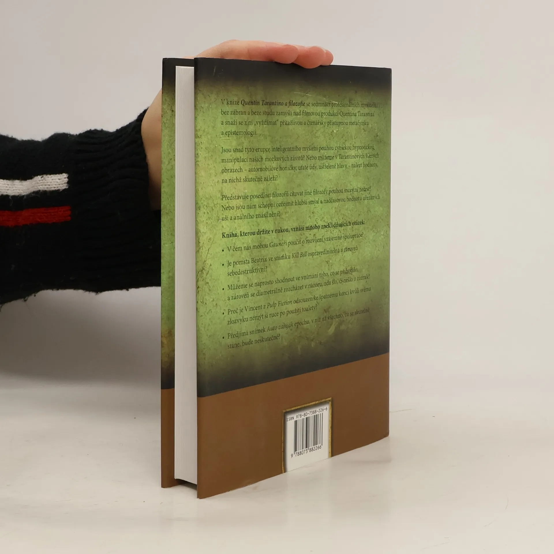 Filmy Quentina Tarantina jsou přímo ideálními náměty pro filozofické diskuse, přinášejí totiž závažné otázky týkající se spravedlnosti a etiky, násilí a agrese, řeší povahu příčinné souvislosti a toku času. V této vtipné kolekci článků není žádné téma tabu. Přecházejí od estetické meditace o potocích krve ve filmu Kill Bill k polemice o tom, zda je nevěsta hrdinkou, když je vedena pouze touhou po pomstě, či k otázce, zda se můžeme úplně shodnout na tom, co se stalo, a neshodnout se, zda to, co se stalo, byl zázrak… Jestliže milujete filmy Quentina Tarantina, pak byste měli otevřít tuto knihu a společně se sedmnácti filozofy hledat na tyto (a mnohé další) otázky odpovědi. Jejich pohled na osobu a dílo velkého filmového režiséra vám umožní spatřit jeho tvorbu úplně novýma očima.