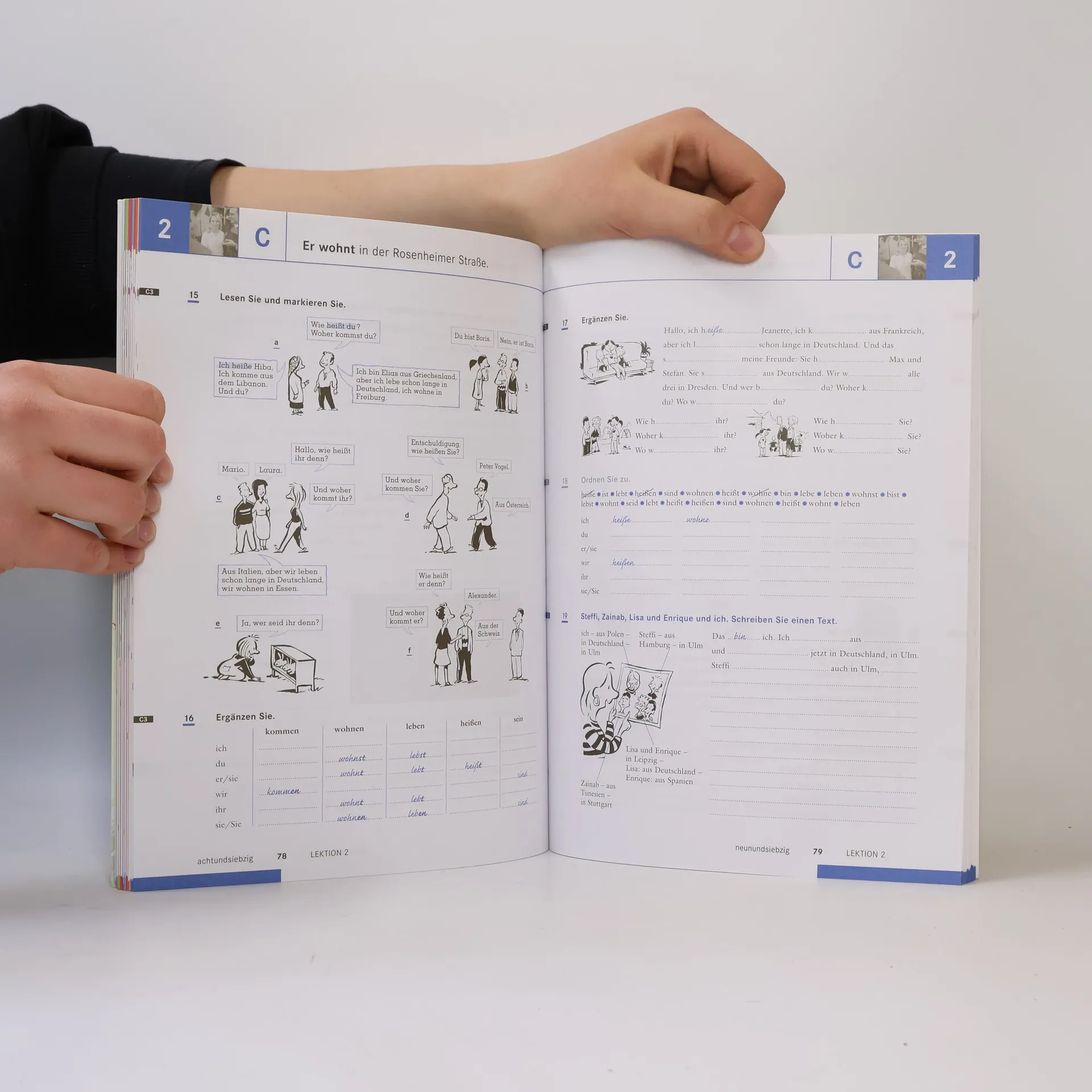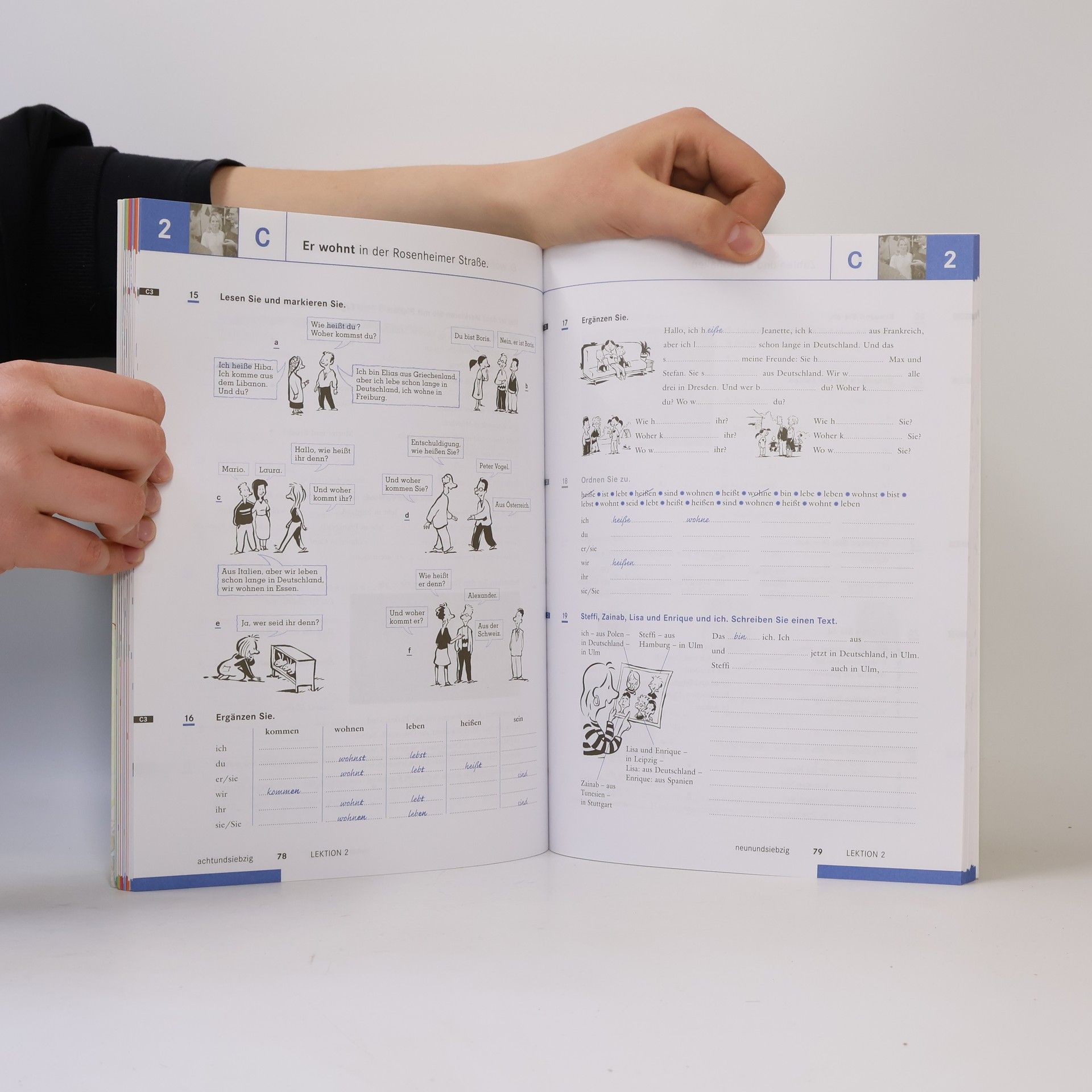Ein Lehrwerk für alle, die in einem deutschsprachigen Land leben oder leben möchten, richtet sich an erwachsene Anfänger in der Erwachsenenbildung. Es orientiert sich an den Vorgaben des Gemeinsamen Europäischen Referenzrahmens und führt über zwei Bände zu den Niveaustufen A1, A2 und B1. Die Themen sind alltagsrelevant und erleichtern die Integration in das deutschsprachige Leben, mit Schwerpunkten auf Familienleben und Arbeitswelt, einschließlich Wohnungs- und Stellensuche sowie Schulsystem und Gesundheitswesen. Die flache Progression ermöglicht es auch Lernenden ohne Vorkenntnisse, gut zurechtzukommen. Die Lektionen sind kurz und klar strukturiert, wobei jeder Lernschritt auf einer Seite abgeschlossen wird. Eine Foto-Hörgeschichte dient als Einstieg in jede Lektion, bietet Identifikationsmöglichkeiten und vermittelt landeskundliches Wissen sowie Hörverstehen. Die Inhalte entsprechen den Vorgaben für die Prüfungen "Start Deutsch 1 und 2" und beinhalten spezifische Aufgaben zur Prüfungsvorbereitung. Am Ende jedes Niveaus gibt es ein gezieltes Prüfungstraining mit Modelltests und Tipps. Das integrierte Arbeitsbuch enthält Übungen, die nach Schwierigkeitsgrad gekennzeichnet sind, und unterstützt heterogene Lerngruppen. Zudem bietet es ein umfassendes Phonetikprogramm, zahlreiche Projekte und eine Einführung in wichtige Lernstrategien mithilfe eines Lerntagebuchs.