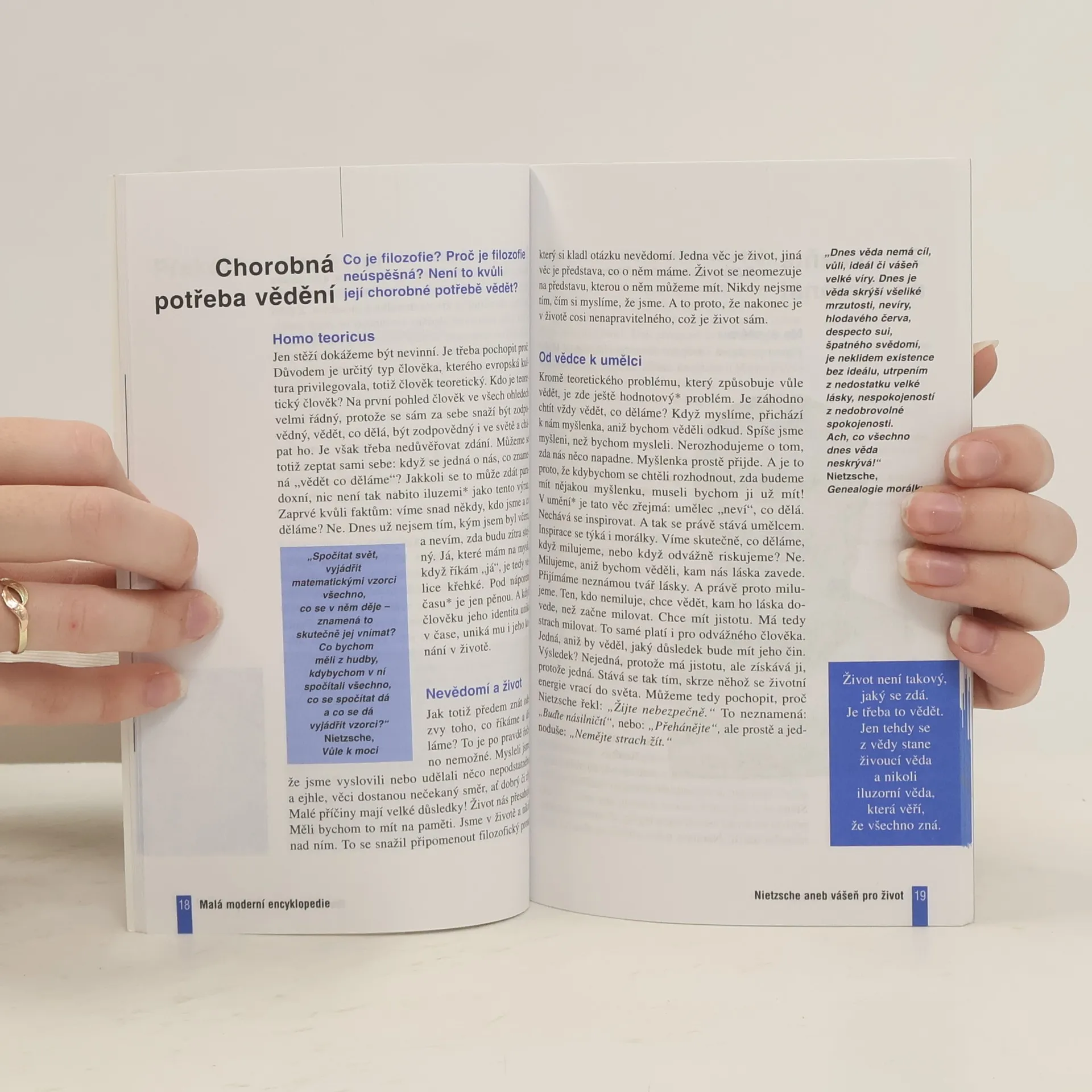 Nietzsche nebyl blázen, jak o něm lidé tvrdili. Byl naopak geniální. Tato kniha by chtěla ukázat v čem. Nastiňuje několik etap jeho myšlenkového vývoje: konstatování úpadku evropské kultury, kritiku filozofie, náboženství a morálky a konečně přitakání kultuře života. Nietzsche, který proletěl temným nebem devatenáctého století jako kometa, zvěstoval budoucnost filozofie návratem k pravdivým slovům.