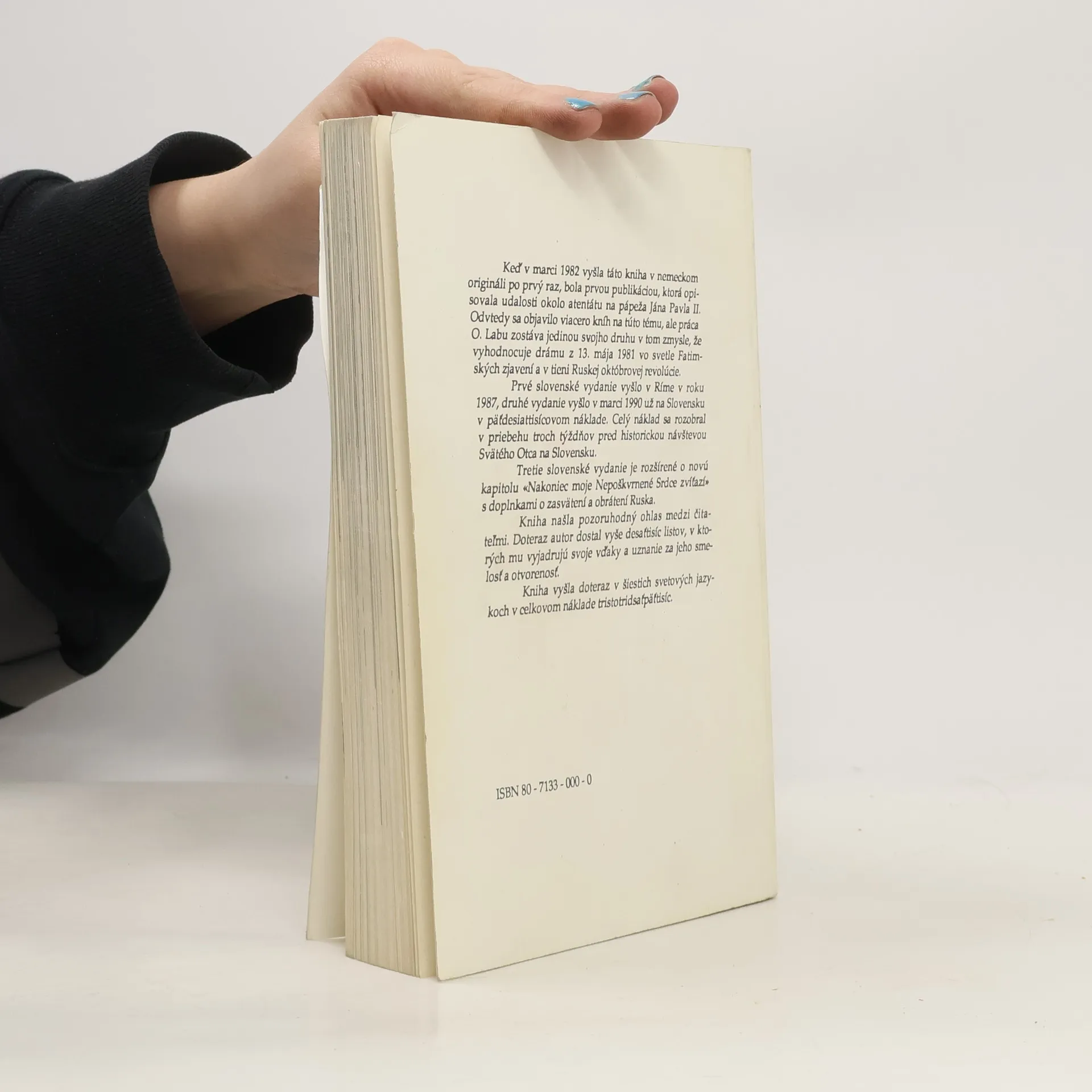 Tato kniha vyšla poprvé v březnu 1982 v německém originále a byla první publikací, která popisovala události kolem atentátu na papeže Jana Pavla II. Od té doby se objevilo více knih na tohle téma, ale práce O.Labu zůstává ojedinělá v tom smyslu, že vyhodnocuje drama z 13. května 1981 ve světle Fatimských zjevení a v stínu Ruské říjnové revoluce.