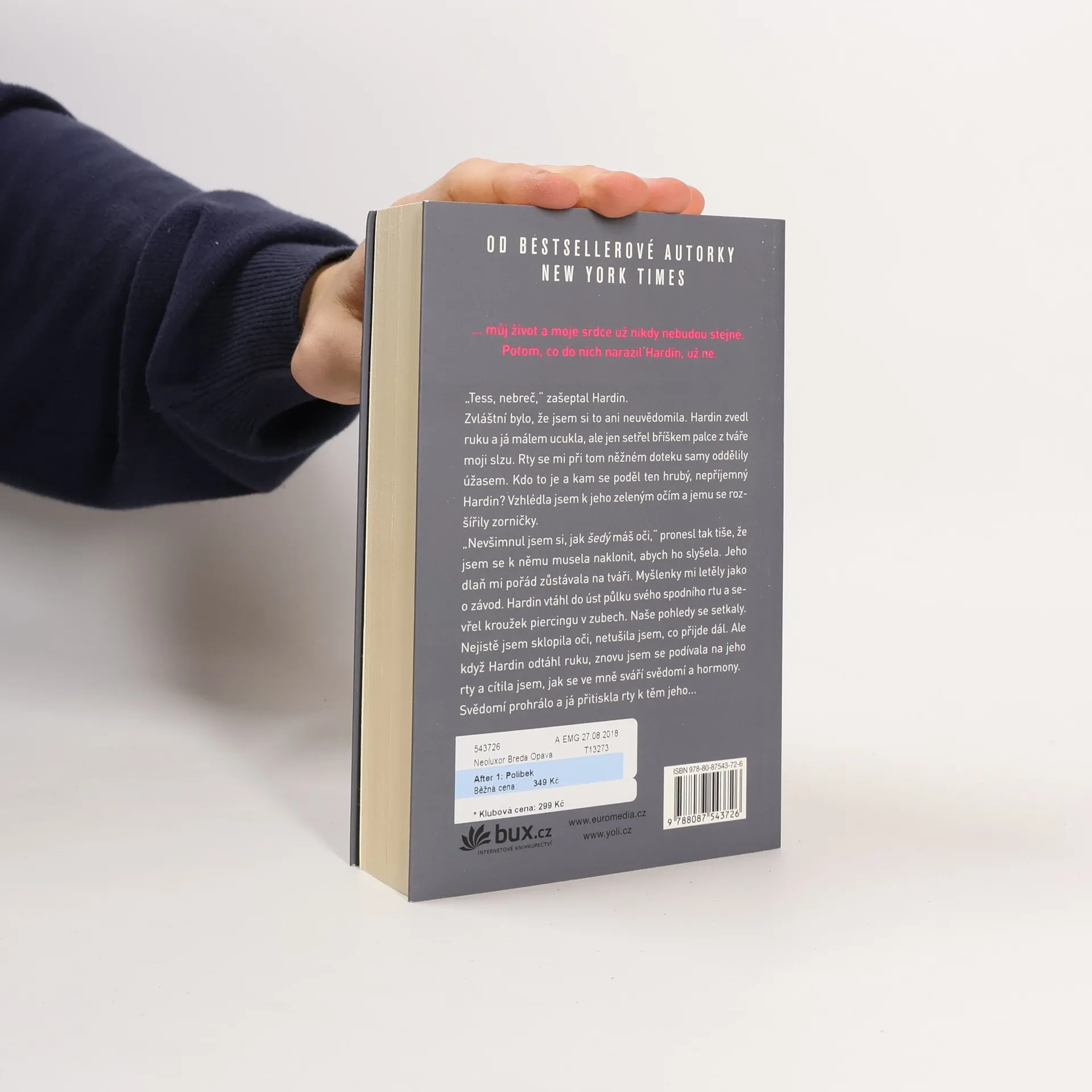 Tessa má všechno – žije v láskyplném prostředí, má chápající rodiče a taky kluka snů, laskavého, milého, kterého jí závidí všechny kamarádky. Lepšího už si ani nemohla přát potkat. Tessin snový svět ale náhle změní jediné setkání. Hardin je pořádně drzý kluk, s nepřeslechnutelným, nafoukaným britským akcentem, nezapomenutelným rozcuchem, tetováním a piercingem ve rtu. Tessa si nemůže pomoct – Hardin je zkrátka jiný než ostatní... A to po všech stránkách – dovede být i pěkně krutý. Neměla by ho spíš nenávidět? Neměla by jím Tessa pohrdat? Jak to, že se od něj nemůže odpoutat? Nedokáže to – i přes všechny jeho chyby a prohřešky. Intenzivní vášnivou blízkost střídají neustálá Hardinova zmizení. Může takhle vůbec vypadat láska? Tessa sama nevěří, že by takový vztah mohl fungovat. Ale jde odolat jeho polibku?