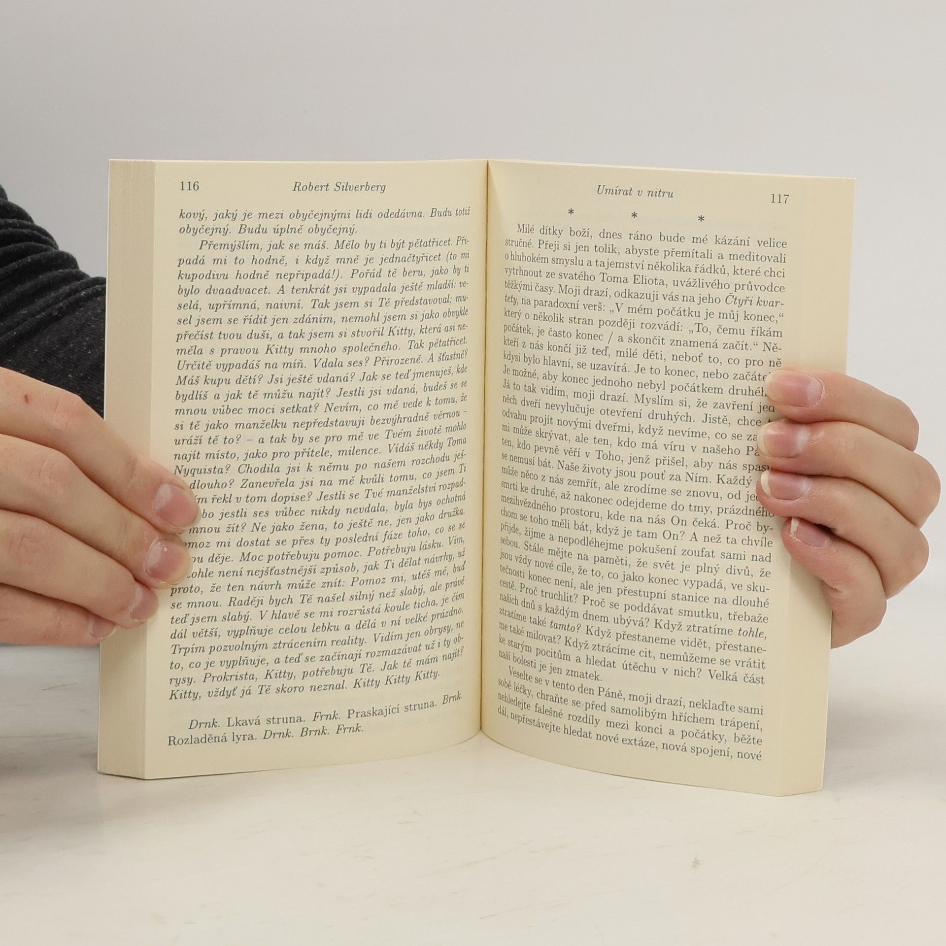 David Selig se narodil se schopností nahlížet do lidské mysli i srdce a odhalit pravdu ukrytou v nejtajnějším koutku duše. S bezohlednou nenuceností využívá tento talent pro vlastní potěšení. A pak, jednoho dne, jeho síla začne pomalu odumírat... Román, všeobecně uznávaný jako zásadní dílo s motivem telepatie, je živý a bez přehánění úchvatný portrét člověka, jenž si nevážil pozoruhodného daru, kterého se mu dostalo. Díky trýznivé ztrátě nadlidského nadání je však nucen naučit se žít jako obyčejný člověk a paradoxně tak porozumět lidem kolem sebe mnohem lépe, než tomu bylo kdykoli dříve. Robert Silverberg, neobyčejně plodný a talentovaný autor science fiction, vytvořil v této knize nezapomenutelnou postavu telepata, jenž dokáže proniknout do nitra každého čtenáře a navždy ho změnit.