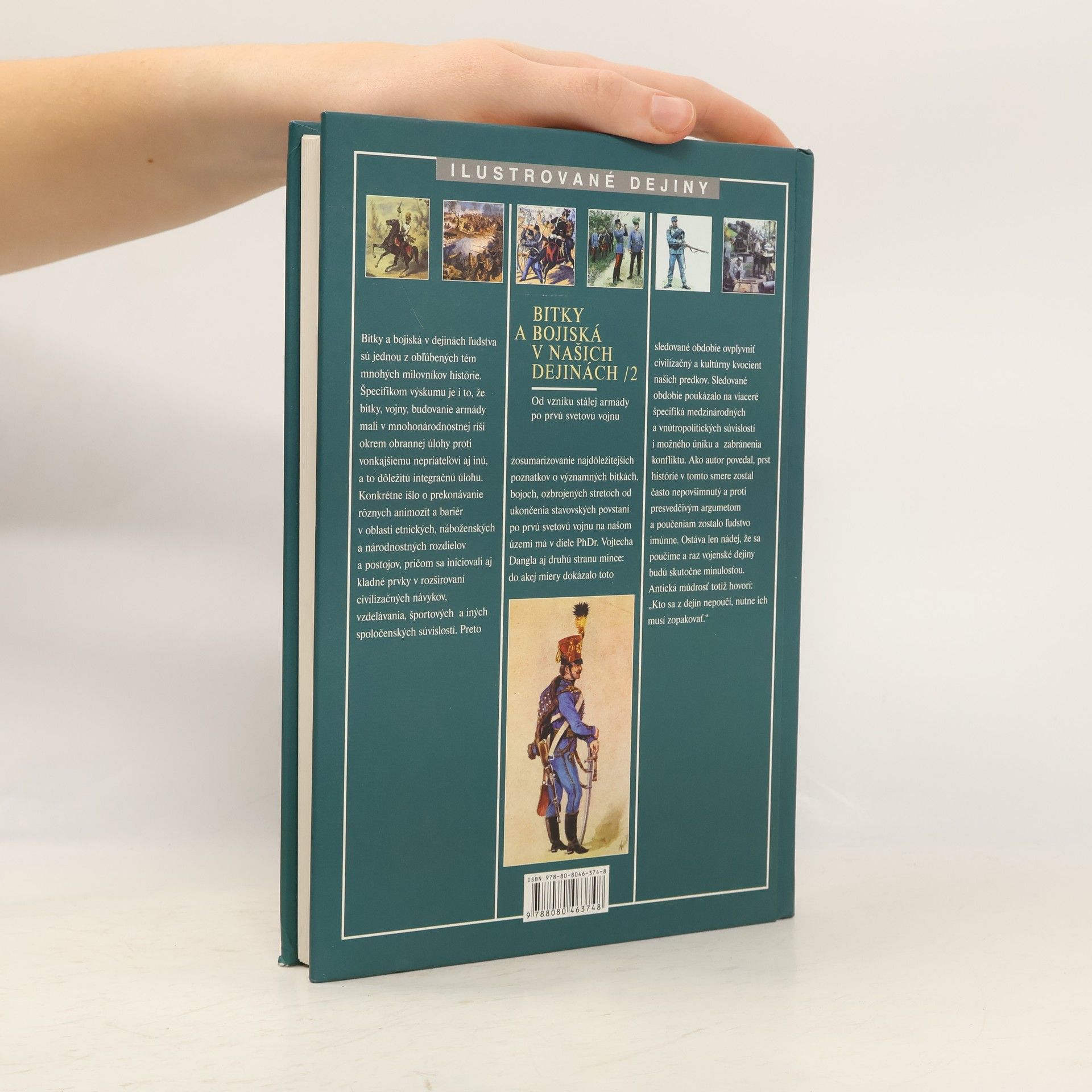 Od vzniku stálej armády po prvú svetovú vojnu Po úspechu prvého dielu titulu Bitky a bojiská v našich dejinách vychádza druhý diel, ktorý sumarizuje najdôležitejšie poznatky o významných bitkách , bojoch, ozbrojených stretoch a vojnách, ktoré sa odohrali na našom území od ukončenia stavovských povstaní roku 1711, resp. od vzniku stálej armády na území Habsburskej monarchie, do vypuknutia prvej svetovej vojny. Zároveň mapuje aj účasť Slovákov na bojových poliach mimo územia Slovenska a hodnotí vojenské udalosti a deje, ktoré v tej či onej miere ovplyvnili chod našich dejín a mali bezprostredný vzťah a dôsledky pre vývin nášho národa. Čitateľa so záujmom o vojenskú históriu upútajú citáty z dobových archívnych materiálov, množstvo farebných a čiernobielych ilustrácií, schémy bitiek, mapky. Prvé vydanie