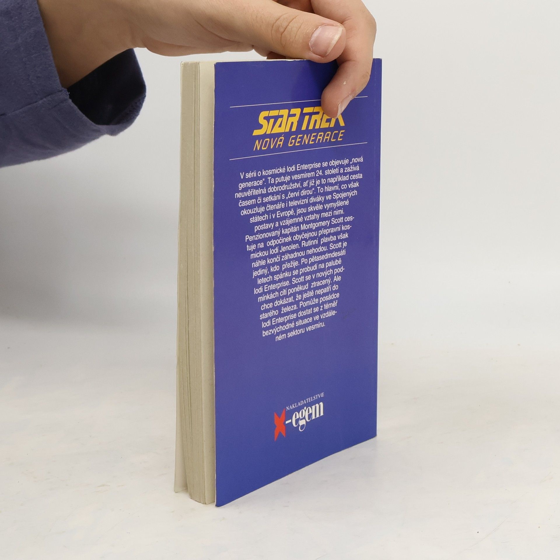 Penzionovaný kapitán Montgomery Scott cestuje na odpočinek obyčejnou přepravní kosmickou lodí Jenolen. Rutinní plavba však náhle končí záhadnou nehodou. Scott je jediní, kdo přežije. Po pětasedmdesáti letech spánku se probudí na palubě lodi Enterprise. Scott se v nových podmínkách cítí poněkud ztracený. Ale chce dokázat, že ještě nepatří do starého železa. Pomůže posádce lodi Enterprise dostat se z téměř bezvýchodné situace ve vzdáleném sektoru vesmíru. Po velkém úspěchu první televizní série Star Trek se objevilo v roce 1987 její pokračování pod označením Nová generace. Nový typ vesmírné lodi Enterprise, na jejíž palubě žije přes tisíc osob, řídí posádka „nové generace" - kapitán Jean-Luc Pikard, první důstojník William Riker, android Dat, lodní poradkyně Deanna Troi, mladý slepý poručík Geordi La Forge a další. Vzápětí po příznivé odezvě televizních diváků ve Spojených státech i v Evropě se objevily i první romány, napsané osvědčenými autory americké sci-fi literatury.... celý text