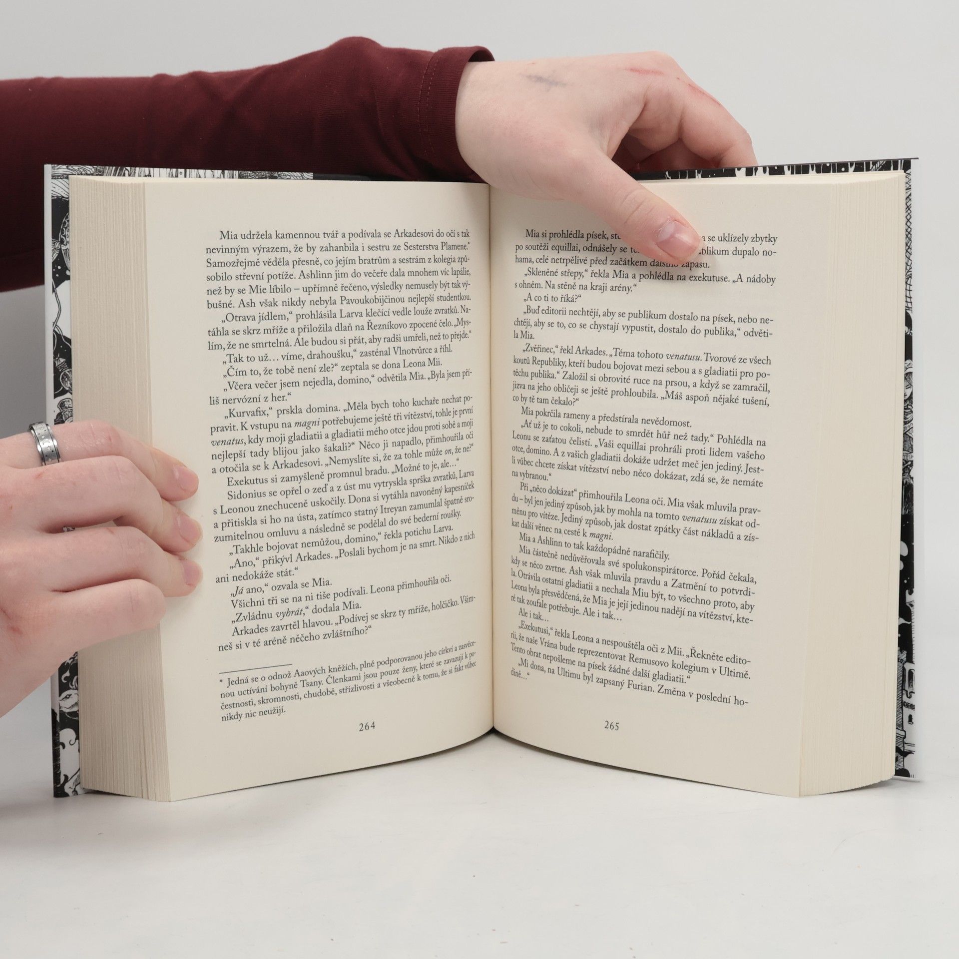 Co mě nezabije, ať se začne bát. Druhý díl fantasy série Nikdynoc. Mia se stala Čepelí Rudé církve, avšak kvůli vyřizování krvavých záležitostí má k zabití konzula Scaevy a kardinála Duoma pořád daleko. Když zjistí, že se oba osobně zúčastní velkých her v Božím hrobě, neváhá a stane se členkou gladiátorských kolegií, aby mohla využít příležitosti a skoncovat s nimi. Mezi zdmi kolegia se rodí spiknutí a počet mrtvých narůstá. Mia navíc odhaluje tajemství, které by mohlo změnit celý její svět.