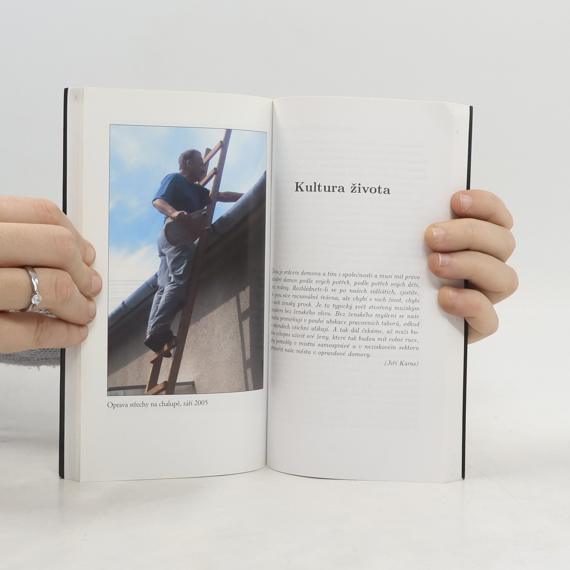 První část knihy je rozhovor s poslancem za KDU-ČSL. V něm se vyjadřuje ke všemu kolem sebe, tedy k TV NOVA, k ekologii, historii, svých představách o Bohu a křesťanství. Následuje řada fotografií z života občana a poslance Jiřího karase. Poté řada stran obsahuje jeho vlastní citáty, kterými hojně zásobil své okolí.
